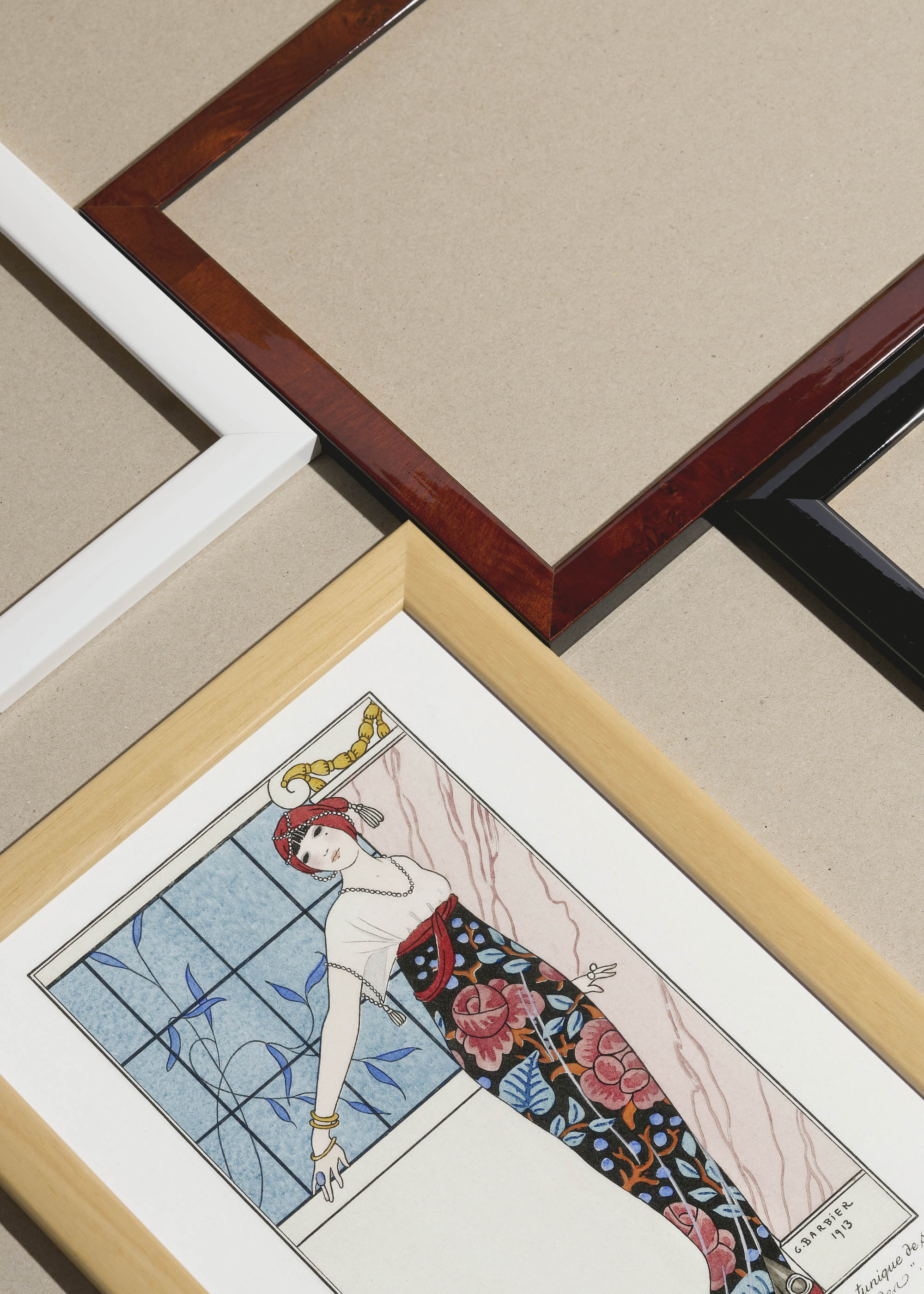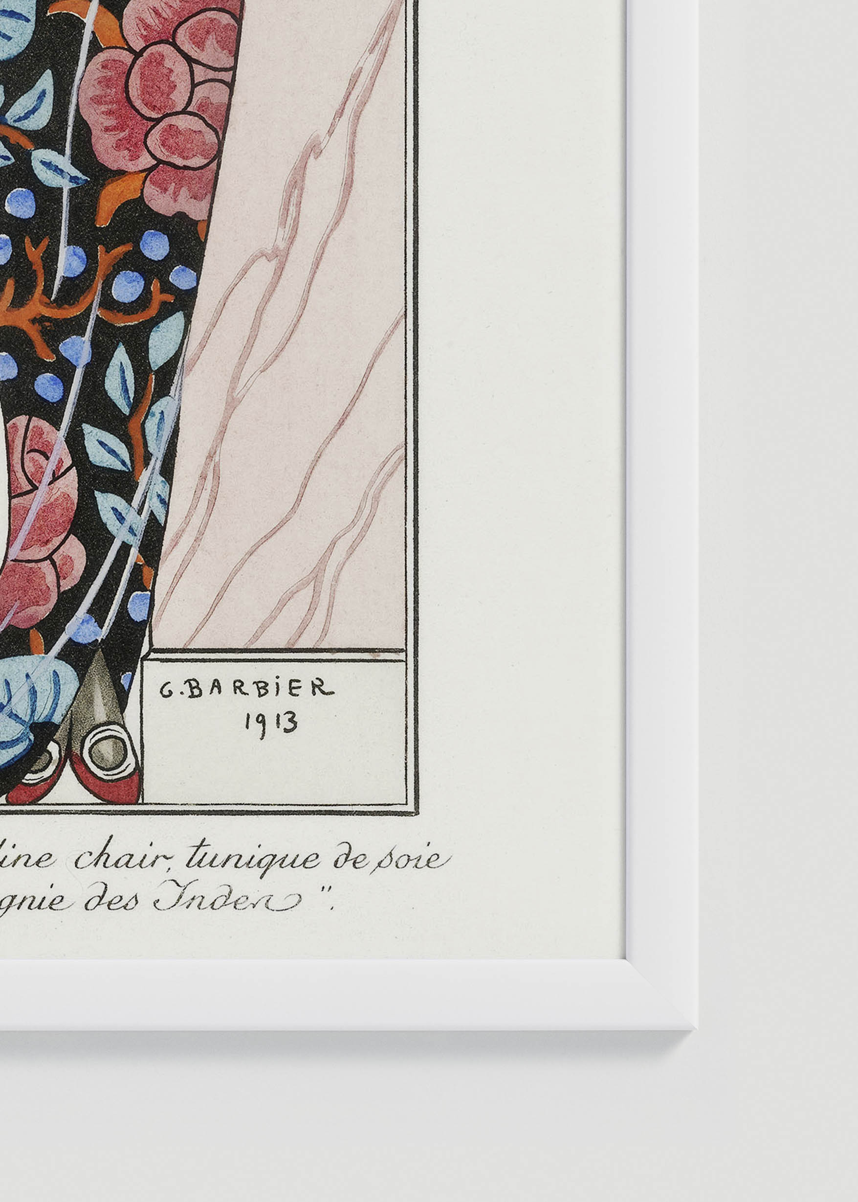 George Barbier, francuski ilustrator i mistrz stylu Art Deco, stworzył w 1913 roku zachwycające dzieło przedstawiające elegancką postać w przepięknej, orientalnej sukni. Ten niezwykły plakat to prawdziwa perła wczesnego okresu dwudziestolecia międzywojennego, kiedy to Paryż oszalał na punkcie wszystkiego, co egzotyczne i wyrafinowane. Barbier, nazywany często „współczesnym Watteau”, zasłynął jako ilustrator mody dla najznamienitszych domów haute couture, w tym dla samego Paula Poireta.