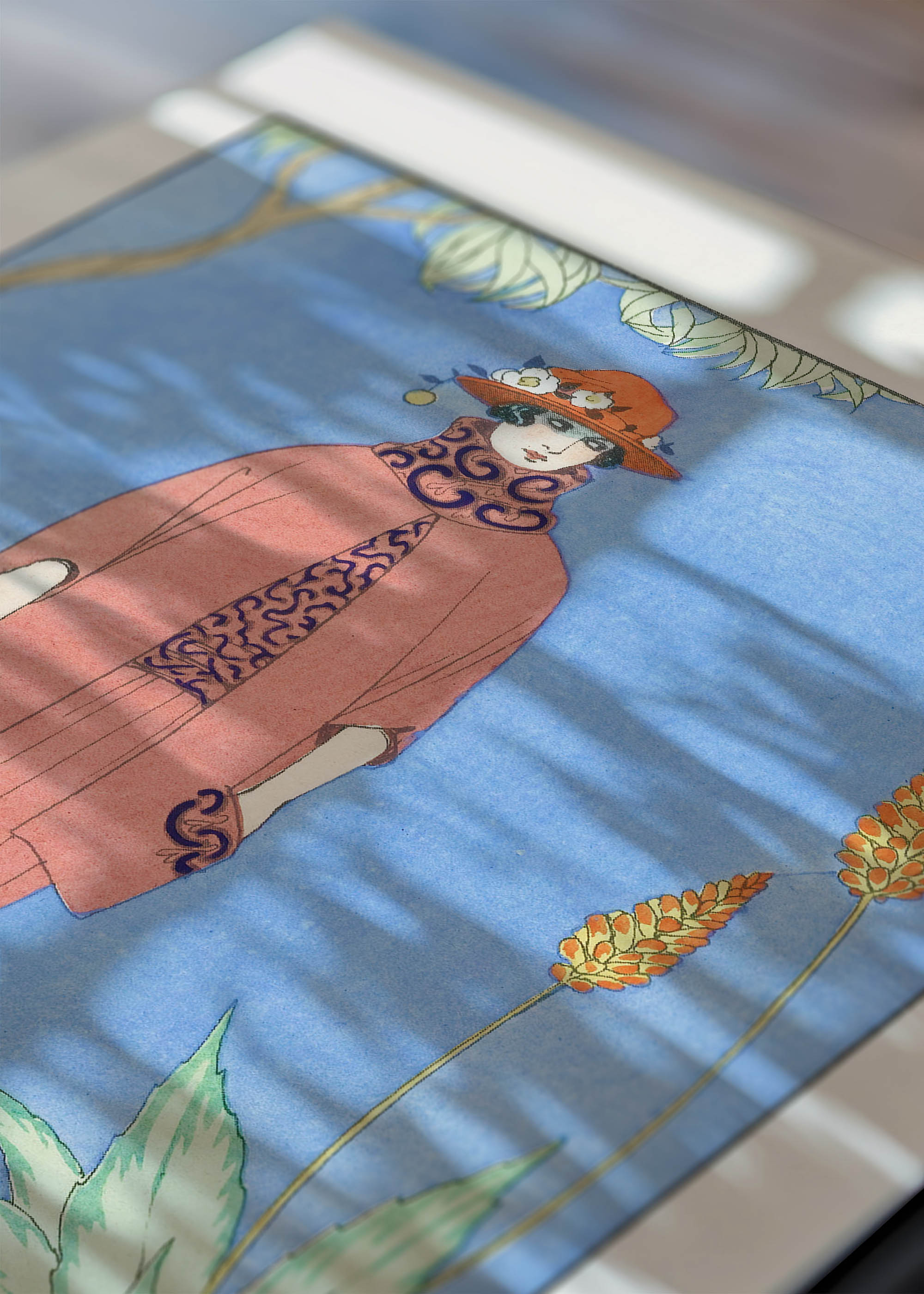 Ta grafika idealnie komponuje się z wnętrzami w stylu glamour, art deco czy współczesnym eklektyzmie. Będzie doskonałym uzupełnieniem salonu z aksamitnymi meblami w odcieniach szałwii lub granatu. Plakatello poleca ten wzór miłośnikom vintage i osobom ceniącym wyrafinowaną estetykę międzywojnia. Dzieło Barbiera wniesie do przestrzeni nutkę paryskiej elegancji i wakacyjnego sznytu rodem z Riwiery.