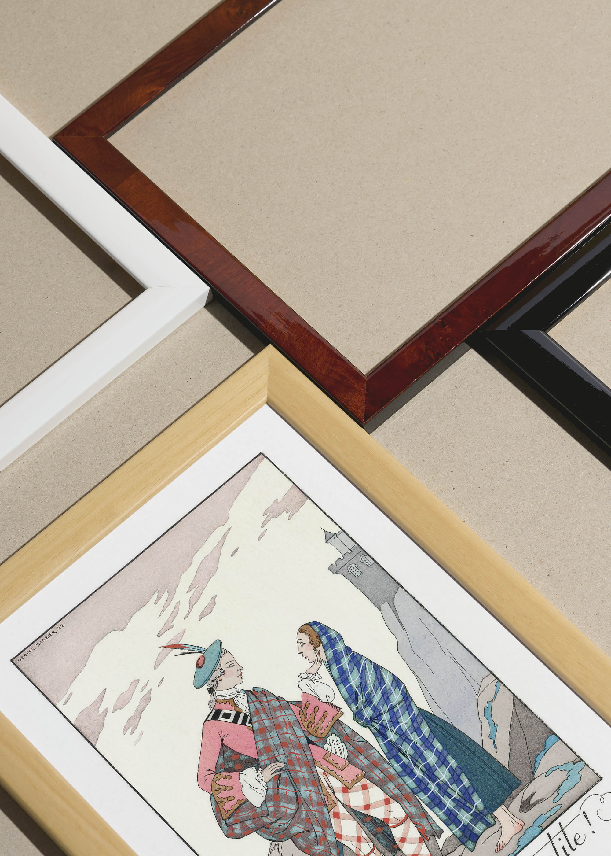 Packshot ramek Plakatello® wykonanych z włoskich i polskich listew ramiarskich. Ramy tworzone ręcznie w pracowni w Lublinie z wykorzystaniem tradycyjnych manualnych narzędzi. Każda rama jest indywidualnie wykańczana i kontrolowana przed wysyłką. Szeroka paleta kolorów pozwala dobrać idealną oprawę do plakatów i obrazów.