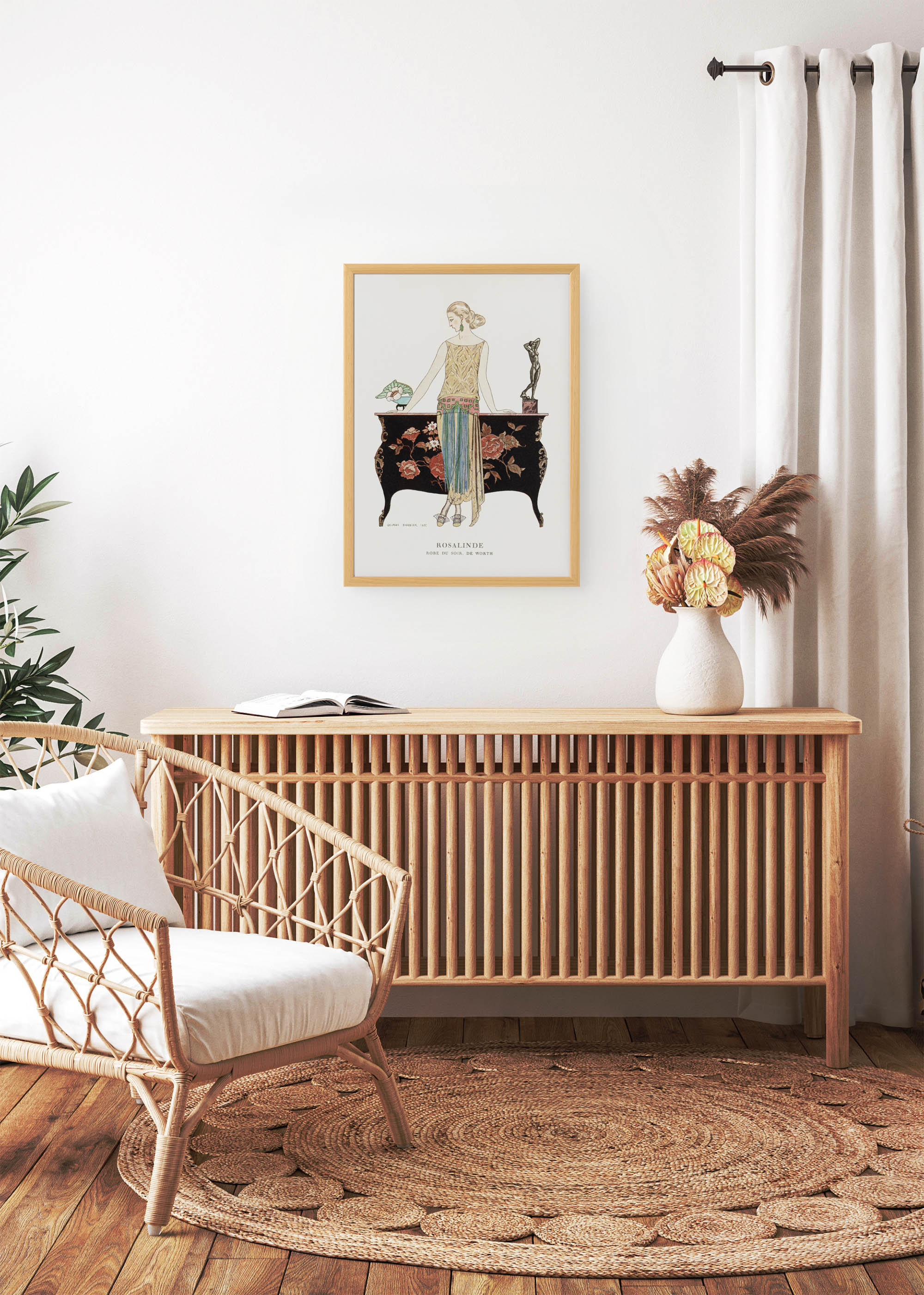 Ten plakat idealnie wpasuje się w wnętrza w stylu glamour, Art Deco czy eklektyczne salony. Będzie wspaniałym dopełnieniem przestrzeni z aksamitnymi dodatkami w odcieniach butelkowej zieleni czy burgundu. W kolekcji Plakatello to pozycja obowiązkowa dla miłośników historii mody i elegancji międzywojennego Paryża. Dzieło doskonale komponuje się z lustrzanymi ramami i złotymi akcentami, podkreślając wyrafinowany charakter każdego pomieszczenia.