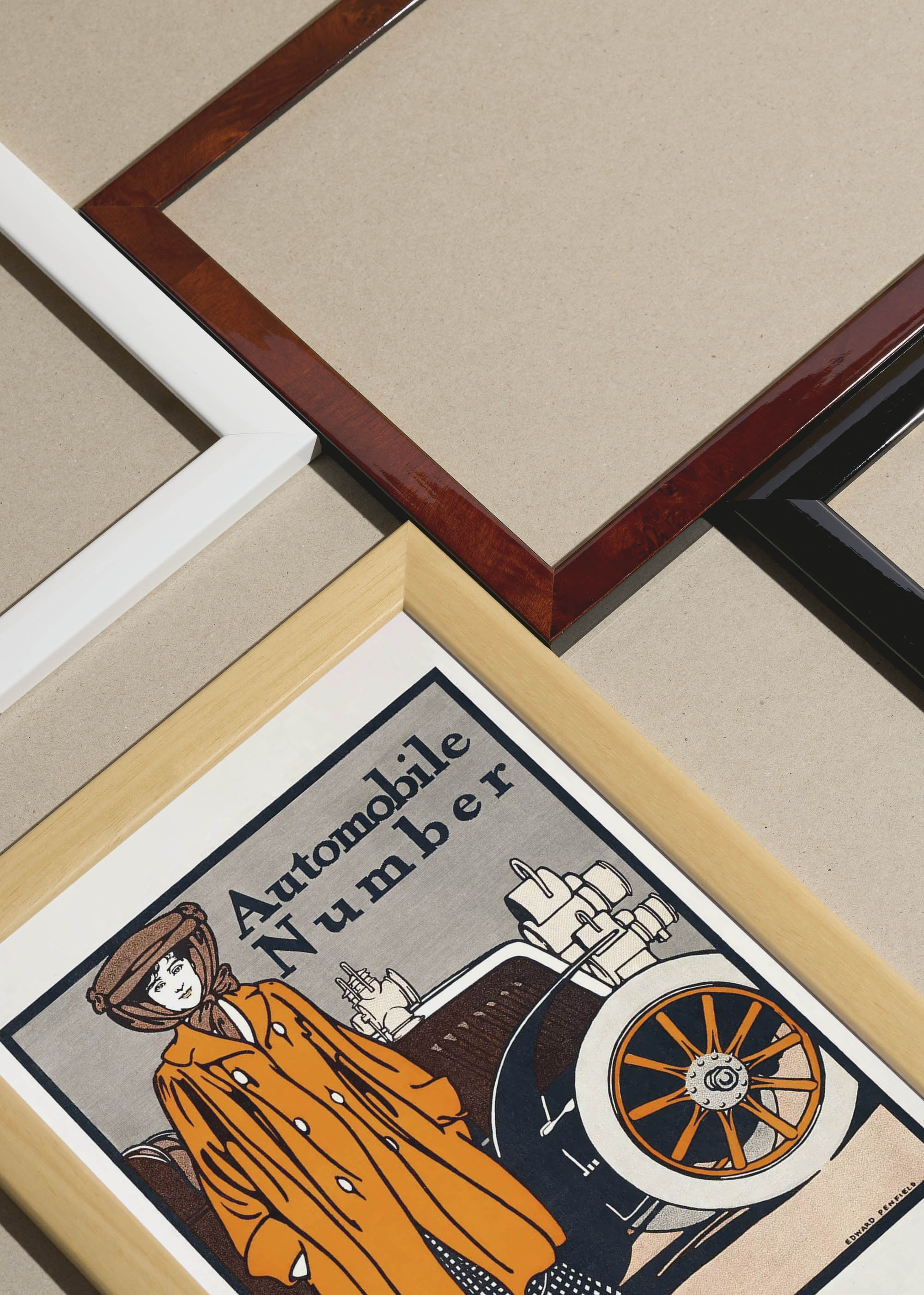 Packshot ramek Plakatello® wykonanych z włoskich i polskich listew ramiarskich. Ramy tworzone ręcznie w pracowni w Lublinie z wykorzystaniem tradycyjnych manualnych narzędzi. Każda rama jest indywidualnie wykańczana i kontrolowana przed wysyłką. Szeroka paleta kolorów pozwala dobrać idealną oprawę do plakatów i obrazów.