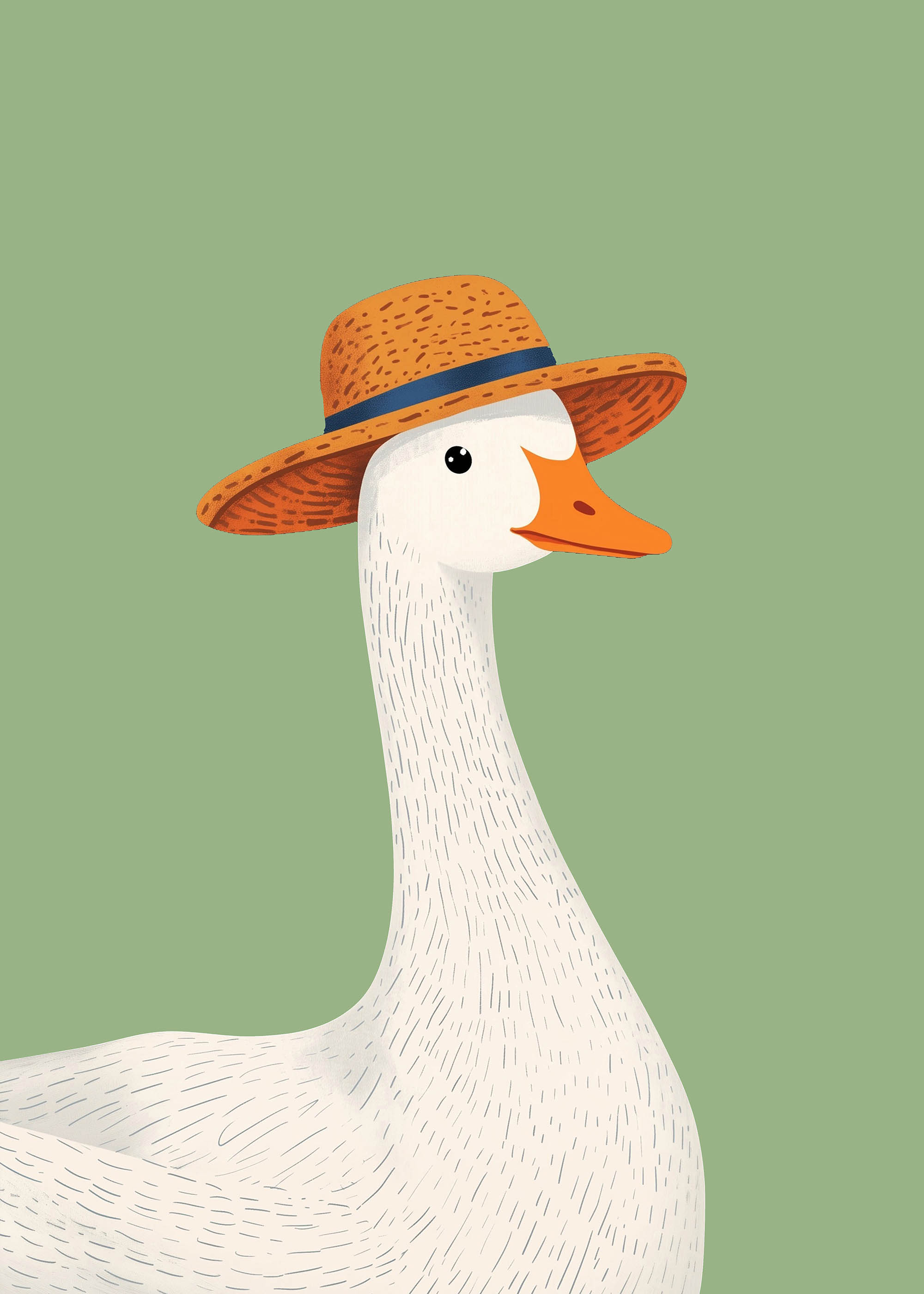 Plakat biała gęś w słomianym kapeluszu do pokoju dziecięcego