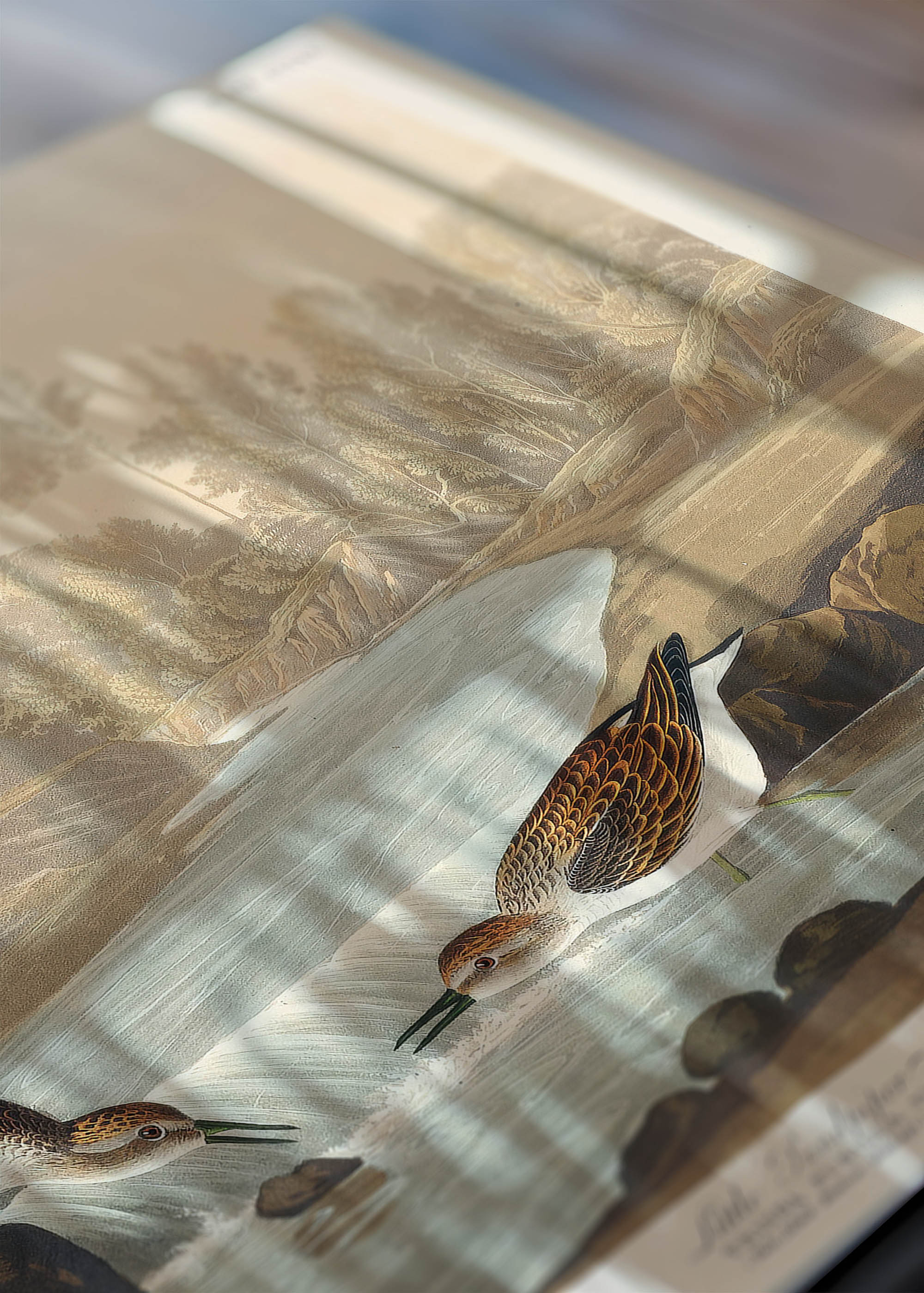 Ten wyjątkowy plakat przedstawiający biegusa malutkiego to wierny reprint jednej z najbardziej rozpoznawalnych ilustracji z ornitologicznego dzieła „Birds of America” Johna Jamesa Audubona. Amerykański przyrodnik i artysta stworzył to dzieło między 1827 a 1838 rokiem, dokumentując ptaki Ameryki Północnej w ich naturalnym środowisku. Co ciekawe, Audubon malował ptaki w skali 1:1, a jego ilustracje do dziś zachwycają niezwykłą dokładnością anatomiczną. Biegus malutki nie był tutaj wyjątkowym wyzwaniem, ponieważ jest wielkości naszego poczciwego wróbla – jest przy tym najmniejszym biegusem w Europie. Pojawia się w Polsce z różną intensywnością, w zależności od warunków panujących na arktycznych lęgowiskach.