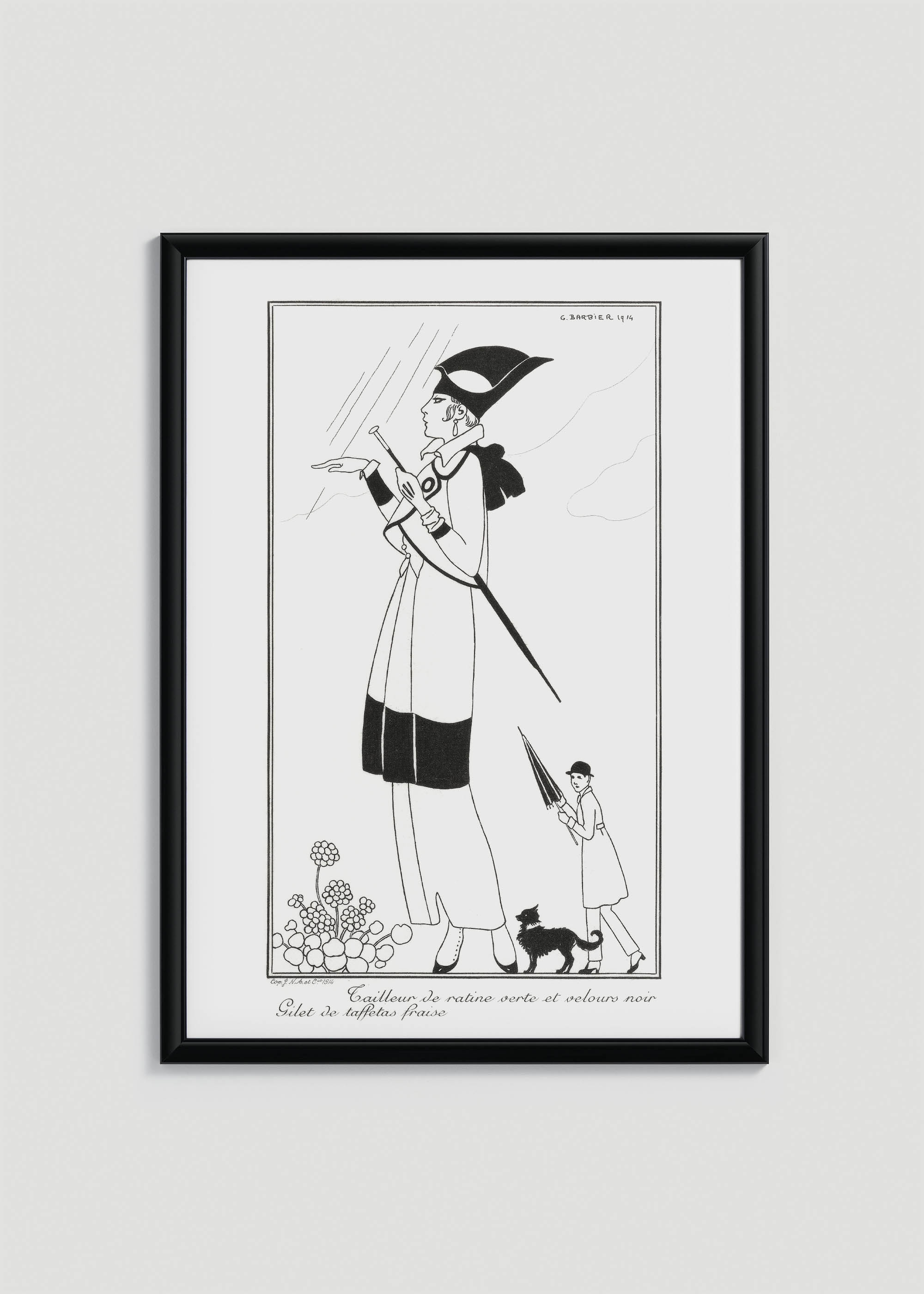 Plakat czarno-biały Art Deco kobieta w deszczu George Barbier 1914