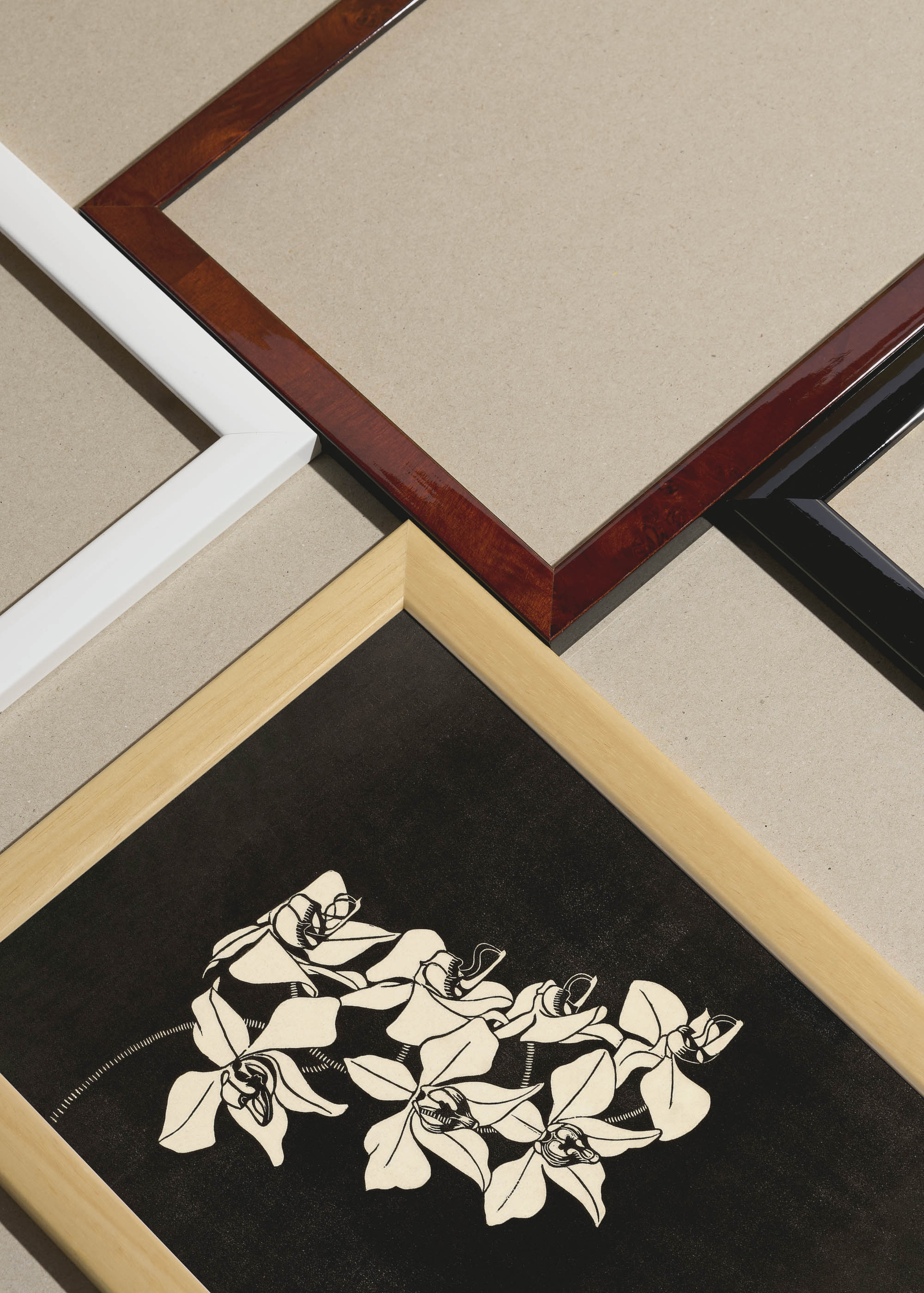 Packshot ramek Plakatello® wykonanych z włoskich i polskich listew ramiarskich. Ramy tworzone ręcznie w pracowni w Lublinie z wykorzystaniem tradycyjnych manualnych narzędzi. Każda rama jest indywidualnie wykańczana i kontrolowana przed wysyłką. Szeroka paleta kolorów pozwala dobrać idealną oprawę do plakatów i obrazów.