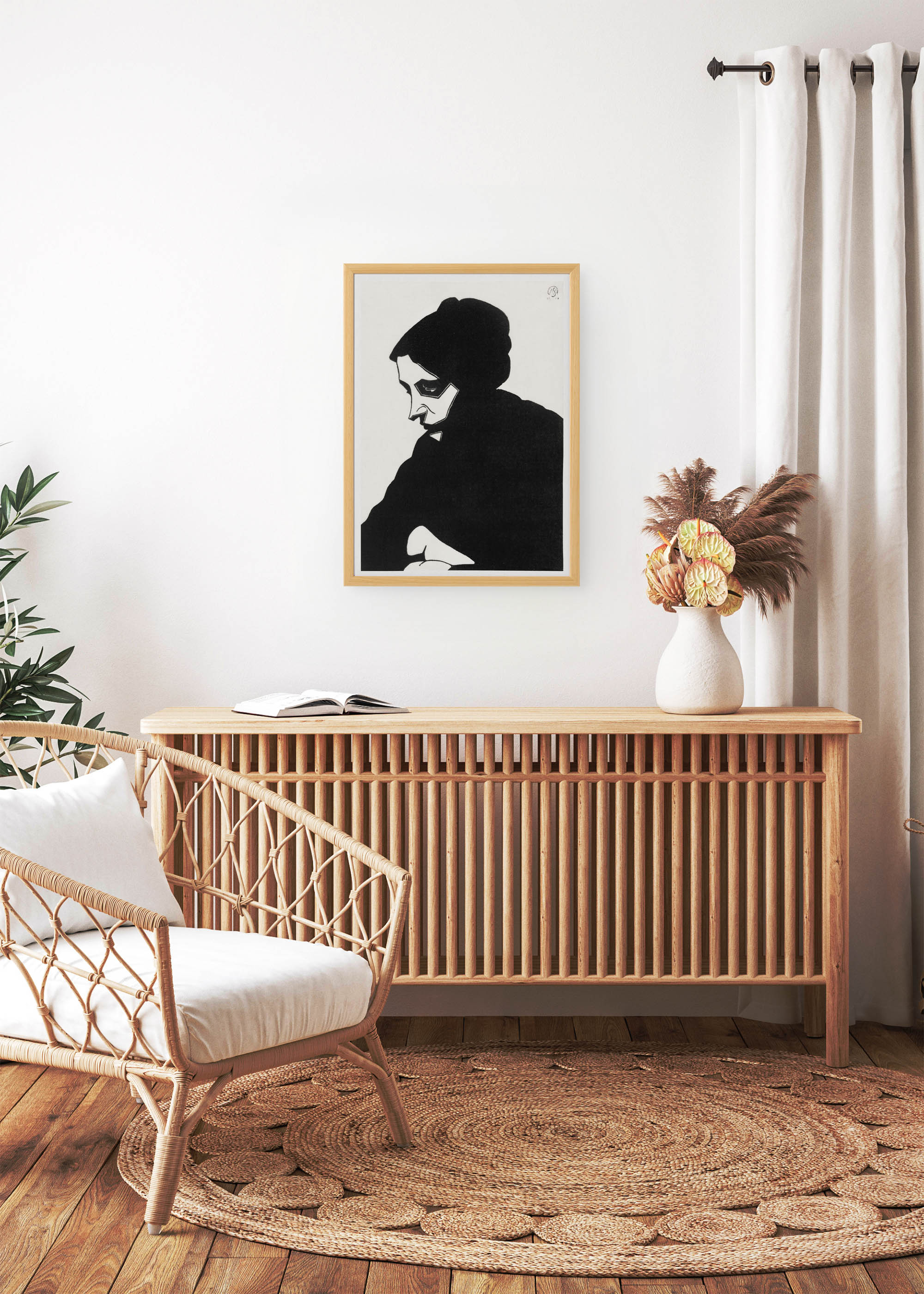 Ten wyjątkowy plakat będący reprintem portretu nieznanej kobiety z 1913 r. autorstwa Samuela Jessurun de Mesquity przenosi nas w fascynujący świat holenderskiej grafiki początku XX wieku. De Mesquita, urodzony w 1868 roku w Amsterdamie artysta pochodzenia portugalsko-żydowskiego, zasłynął swoimi ekspresyjnymi drzeworytami i linorytami, które wyróżniały się dramatyczną grą kontrastów. Tragicznie, większość jego dorobku została zniszczona podczas II wojny światowej, co czyni zachowane reprodukcje jeszcze bardziej cennymi świadectwami jego talentu.