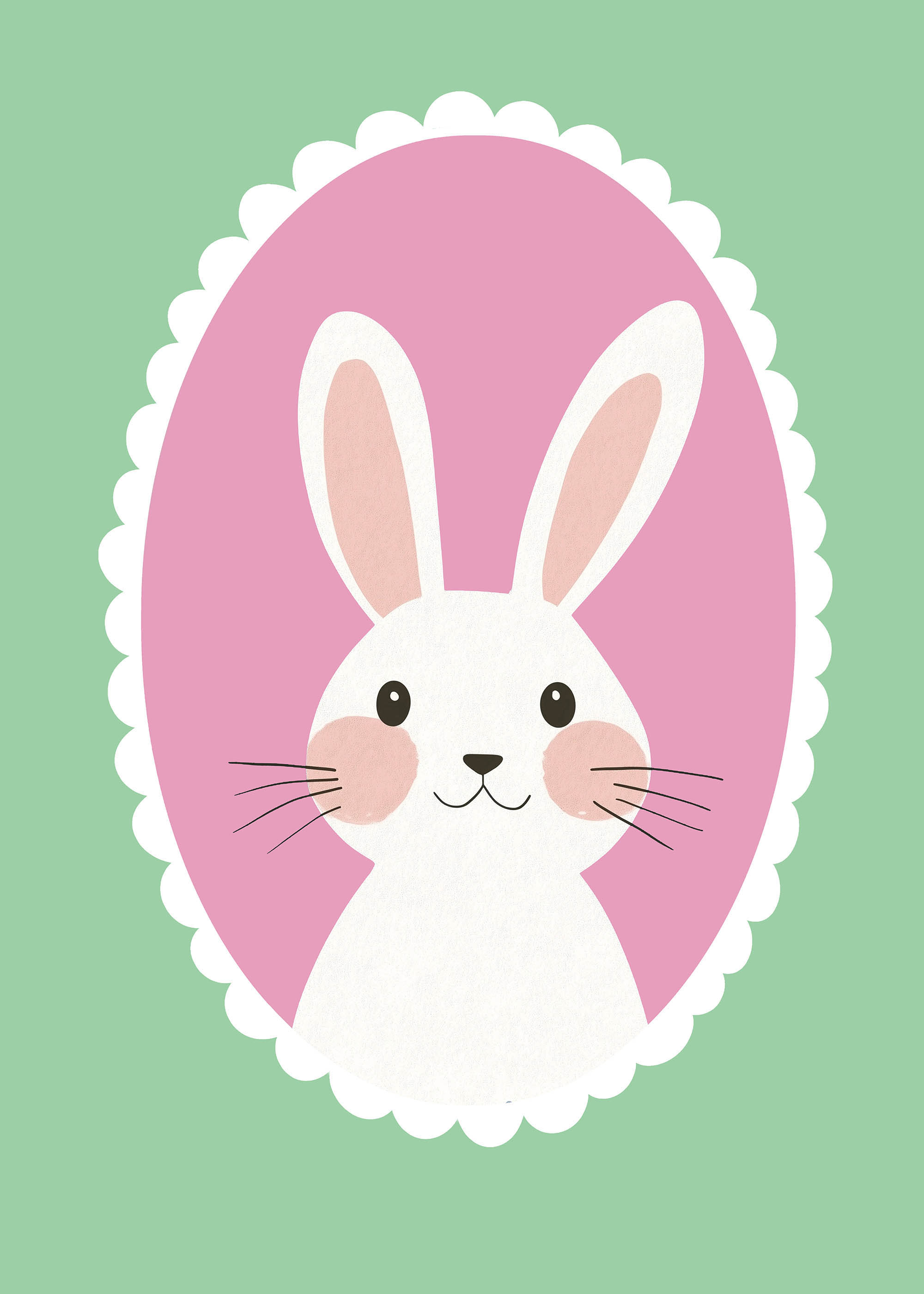 Plakat do pokoju dziecięcego biały króliczek pastelowy róż miętowy