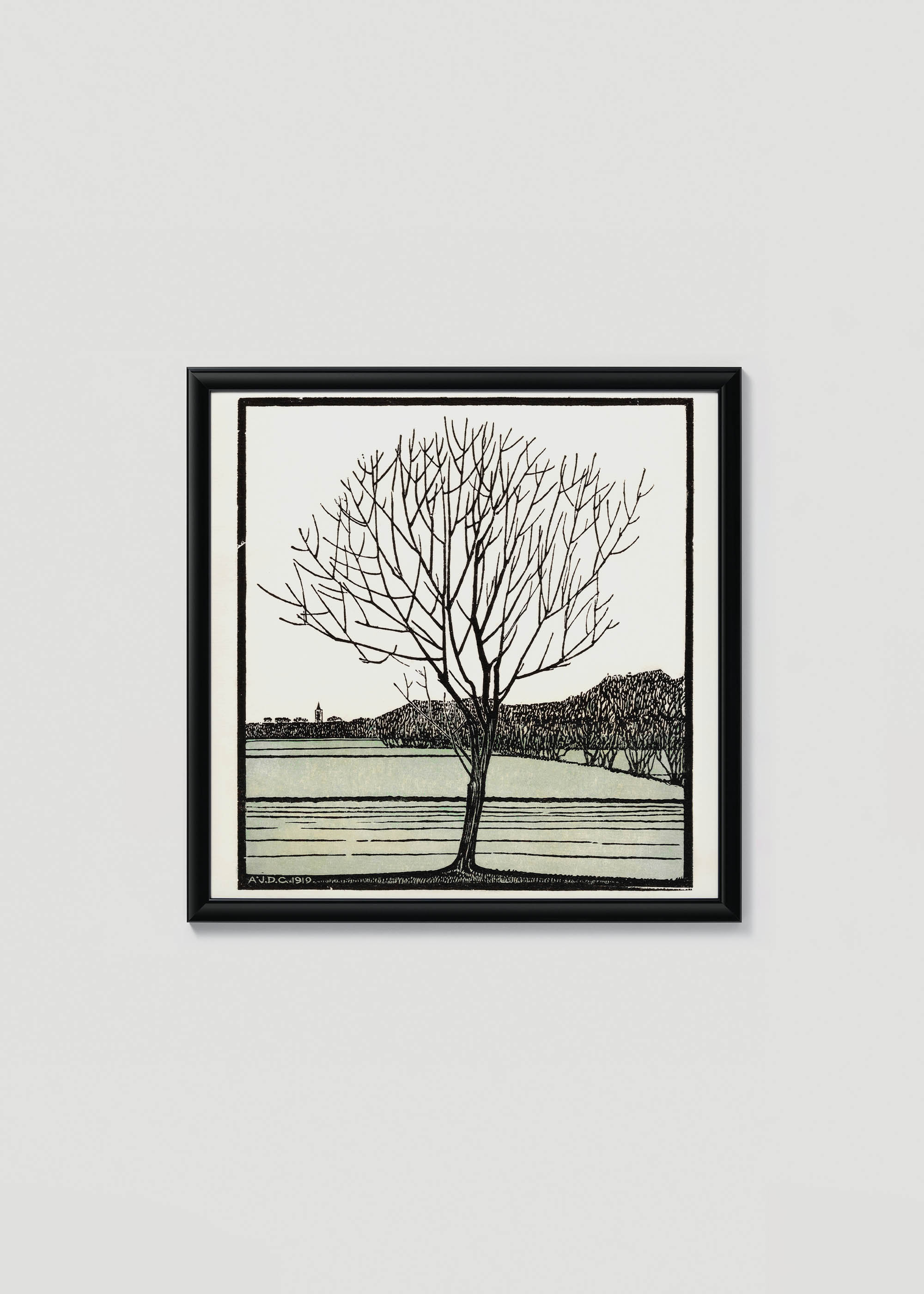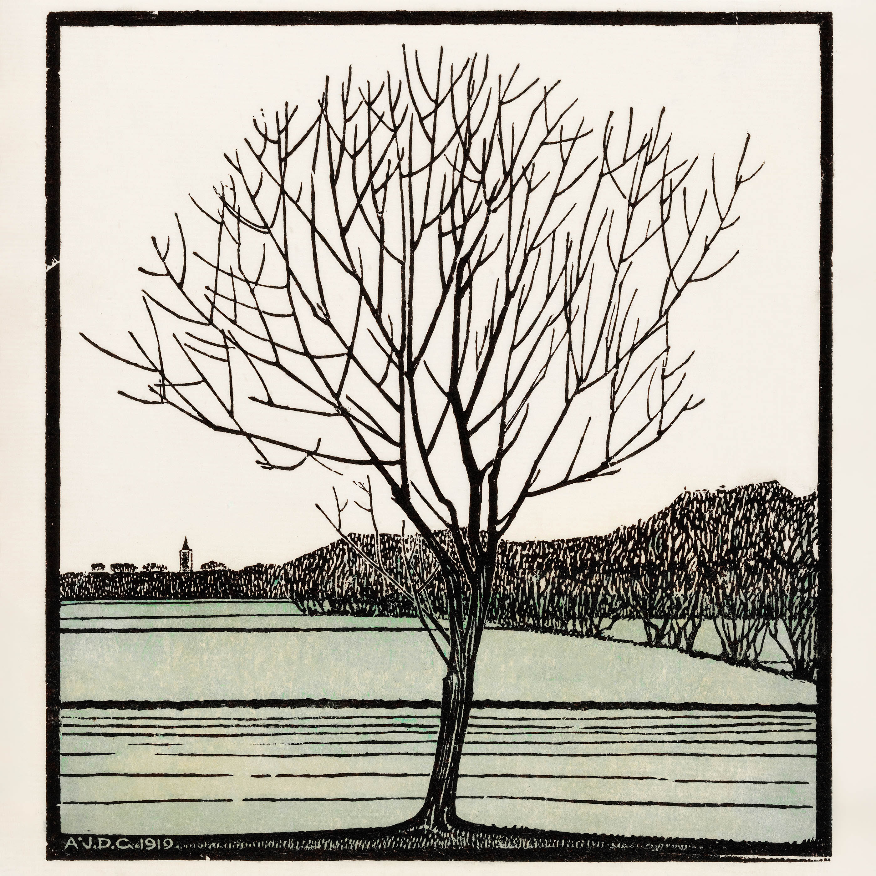 Plakat drzewo nad wodą Julie de Graag drzeworyt 1919