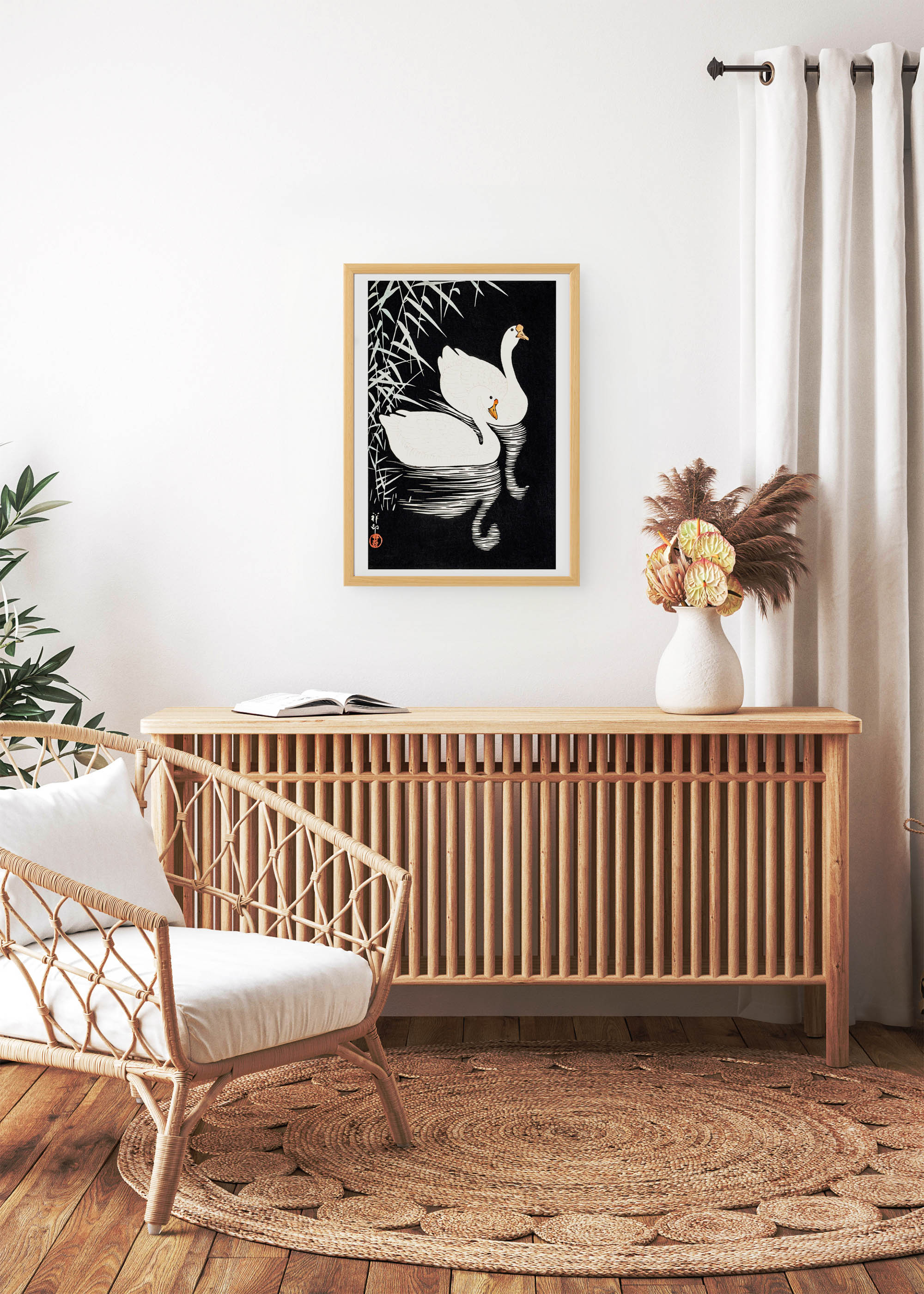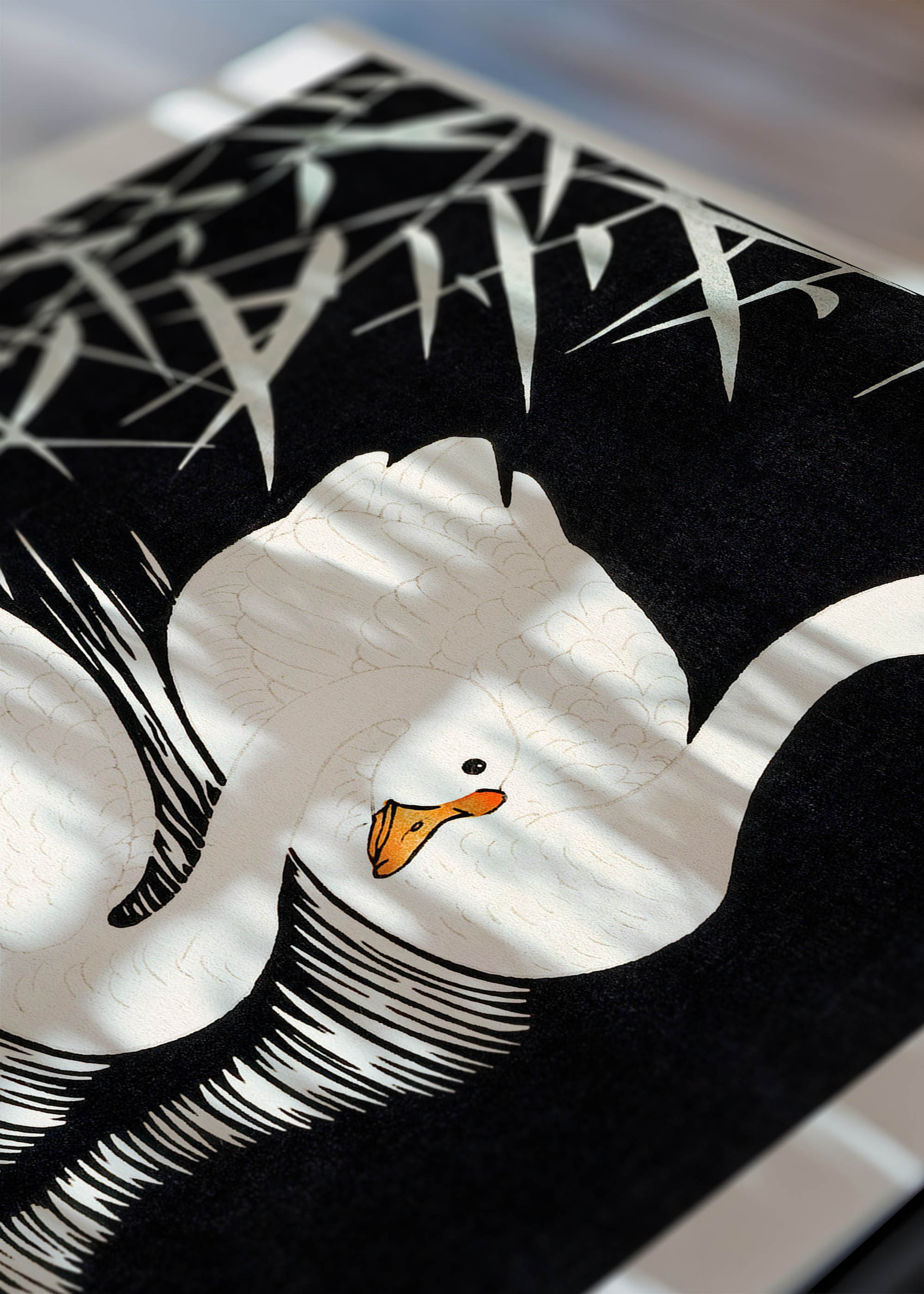Plakatello prezentuje tę reprodukcję jako hołd dla kunsztu japońskich mistrzów drzeworytu. Łabędzie symbolizujące wierność i elegancję, w połączeniu z charakterystyczną dla Kosona precyzją wykonania, tworzą dzieło ponadczasowe – równie aktualne dziś, jak sto lat temu.