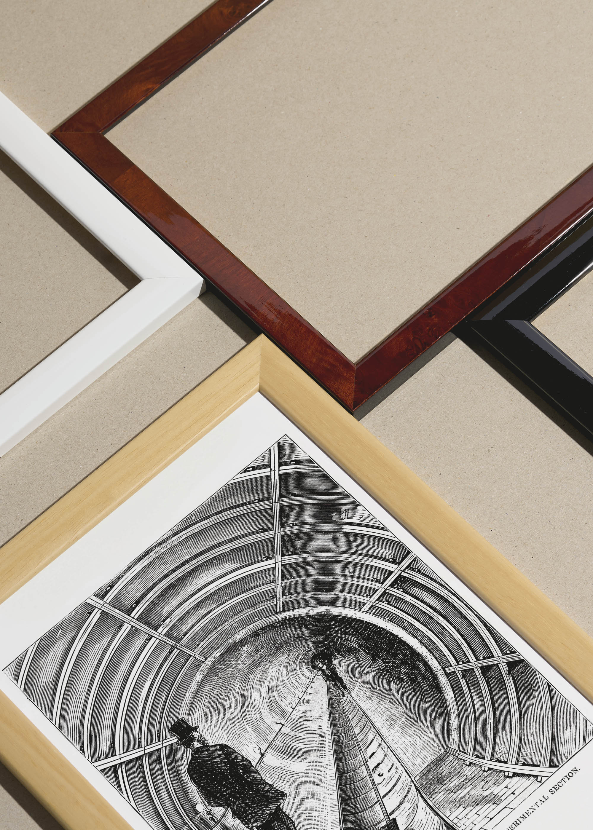 Packshot ramek Plakatello® wykonanych z włoskich i polskich listew ramiarskich. Ramy tworzone ręcznie w pracowni w Lublinie z wykorzystaniem tradycyjnych manualnych narzędzi. Każda rama jest indywidualnie wykańczana i kontrolowana przed wysyłką. Szeroka paleta kolorów pozwala dobrać idealną oprawę do plakatów i obrazów.