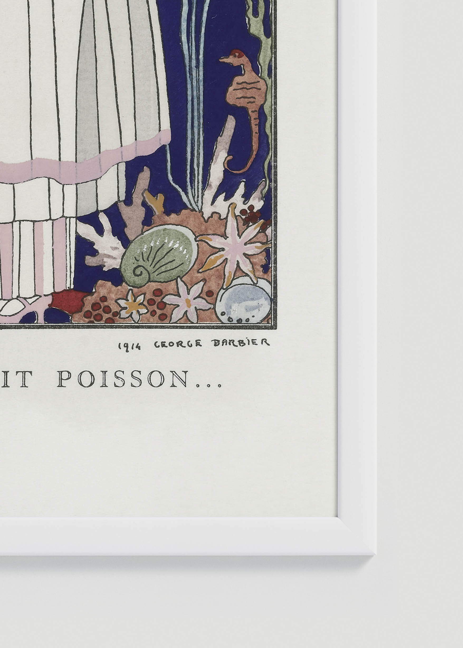 Ten niezwykły plakat to ilustracja autorstwa George’a Barbiera z 1914 roku, zatytułowana „L’étourdissant petit poisson… Robe d’été” (Oszałamiająca mała rybka… Suknia letnia). Barbier, francuski ilustrator i projektant mody urodzony w Nantes, był jednym z najwybitniejszych przedstawicieli stylu Art Deco. Jego prace regularnie pojawiały się w prestiżowych magazynach modowych, takich jak „Gazette du Bon Ton”, gdzie łączył kunszt ilustratorski z najnowszymi trendami haute couture.