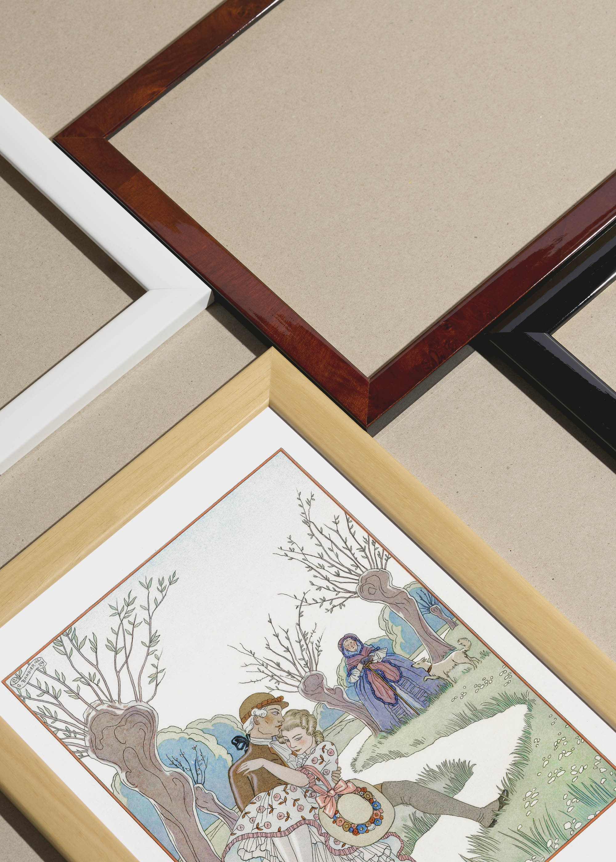 Packshot ramek Plakatello® wykonanych z włoskich i polskich listew ramiarskich. Ramy tworzone ręcznie w pracowni w Lublinie z wykorzystaniem tradycyjnych manualnych narzędzi. Każda rama jest indywidualnie wykańczana i kontrolowana przed wysyłką. Szeroka paleta kolorów pozwala dobrać idealną oprawę do plakatów i obrazów.