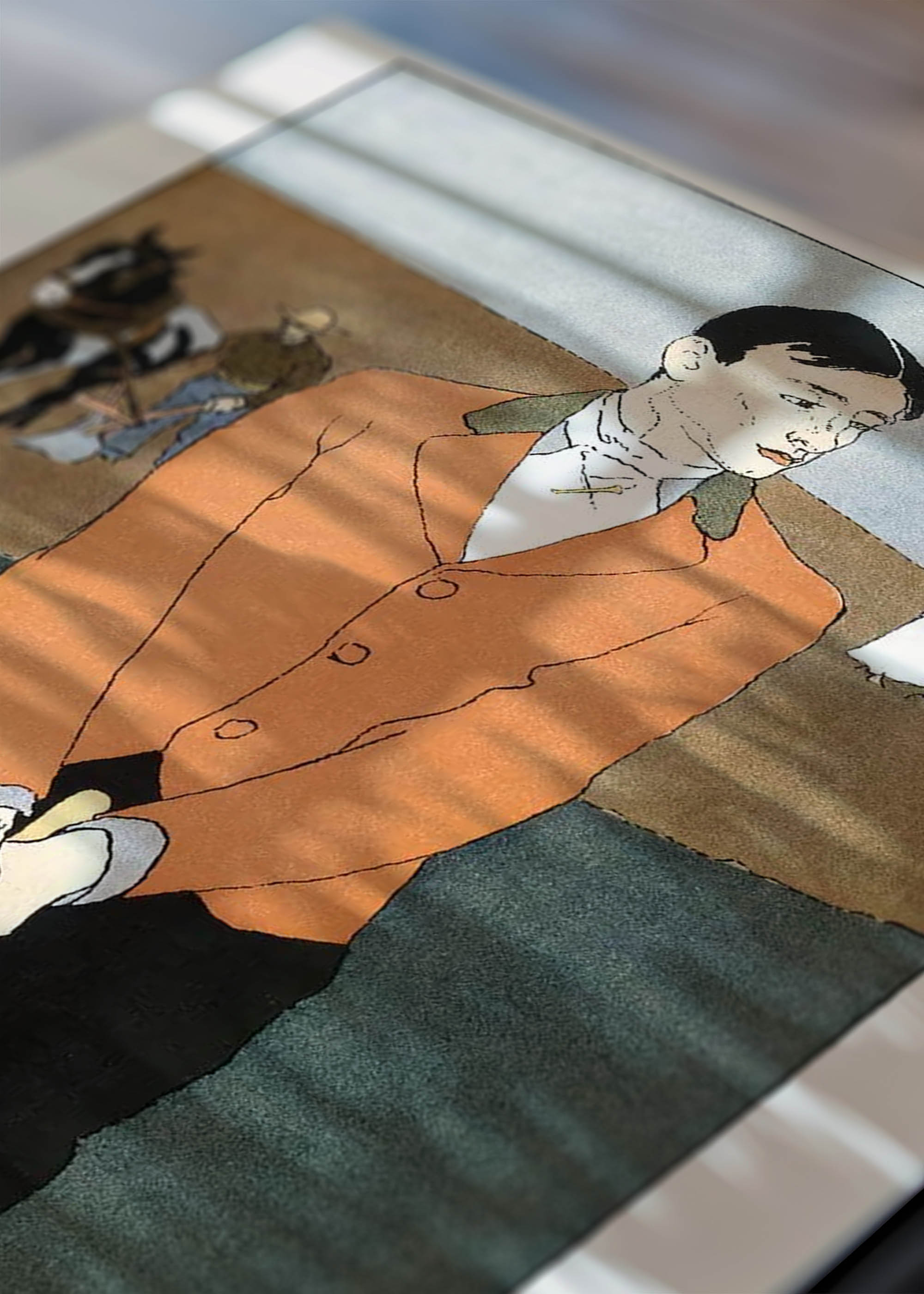 Fotografia z sesji zdjęciowej w pracowni Plakatello® w Lublinie. Właściciel w sytuacji roboczej, trzymający wydruki plakatów. Polska marka plakatów dekoracyjnych, gdzie wszystkie produkty powstają z dbałością o najmniejszy szczegół. Od druku po oprawę – każdy plakat przechodzi przez ręce zespołu, gwarantując najwyższą jakość.