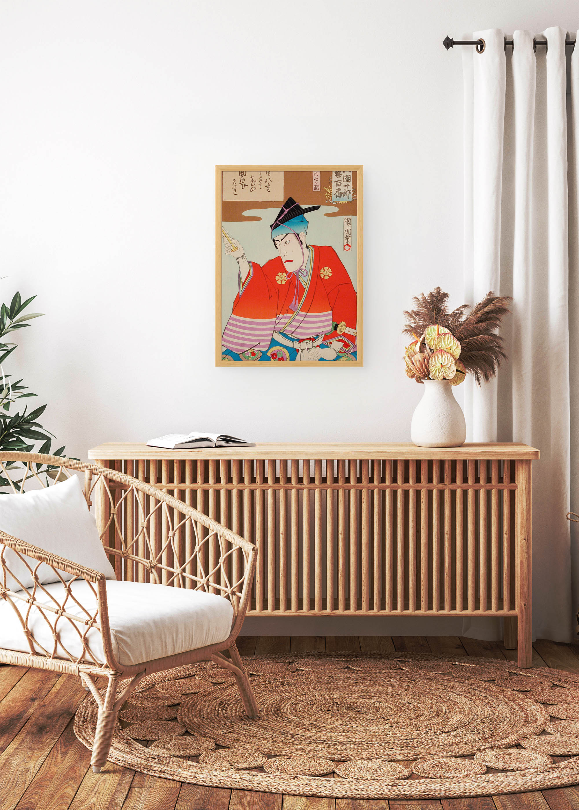 Ta reprodukcja to prawdziwa gratka dla miłośników kultury Kraju Kwitnącej Wiśni, idealnie oddająca ducha epoki Edo i kunsztu tradycyjnego drzeworytu. Plakat stanie się wyrazistym punktem centralnym każdej aranżacji, przyciągając wzrok swoją teatralną ekspresją i mistrzowskim wykonaniem.