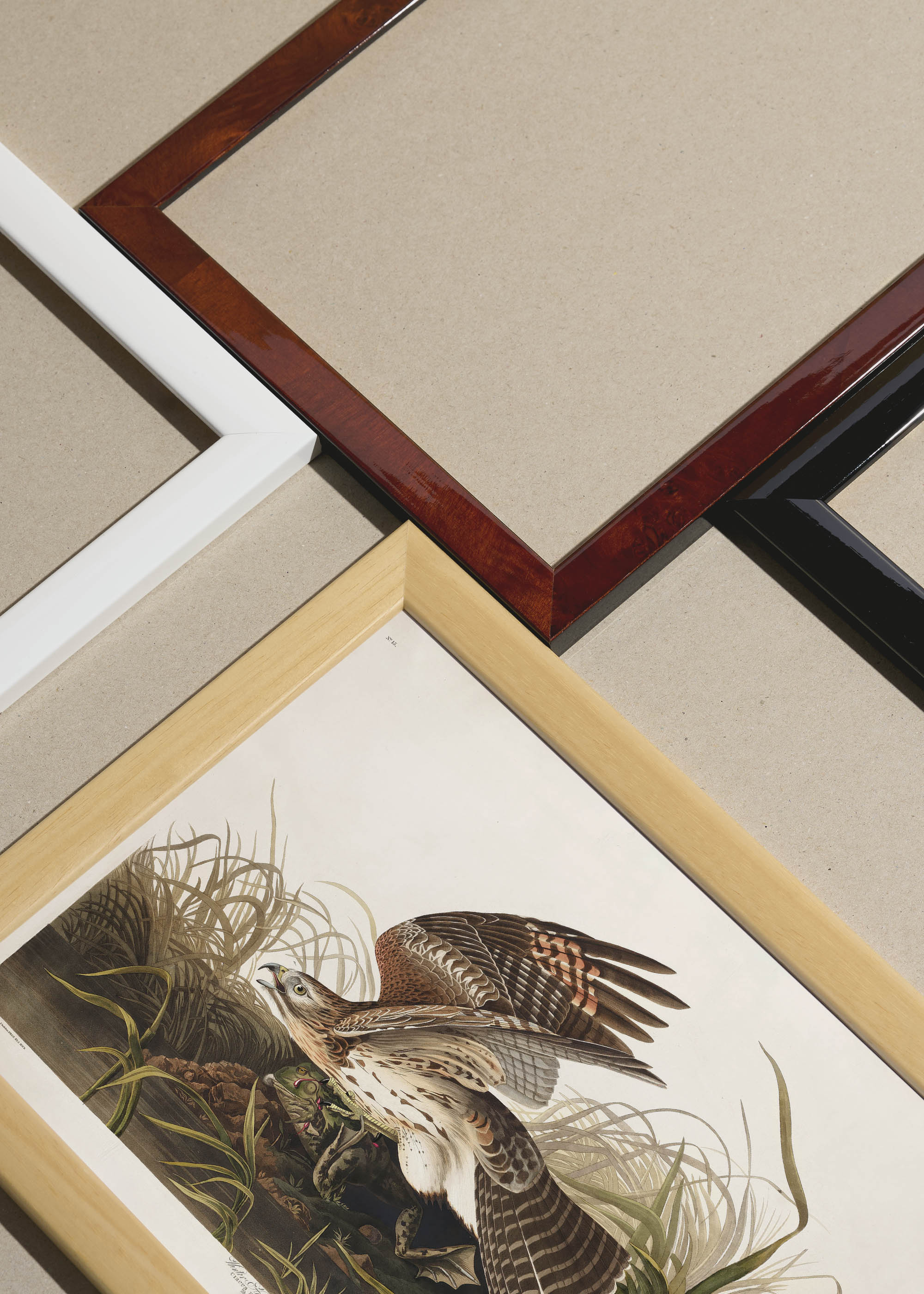 Packshot ramek Plakatello® wykonanych z włoskich i polskich listew ramiarskich. Ramy tworzone ręcznie w pracowni w Lublinie z wykorzystaniem tradycyjnych manualnych narzędzi. Każda rama jest indywidualnie wykańczana i kontrolowana przed wysyłką. Szeroka paleta kolorów pozwala dobrać idealną oprawę do plakatów i obrazów.