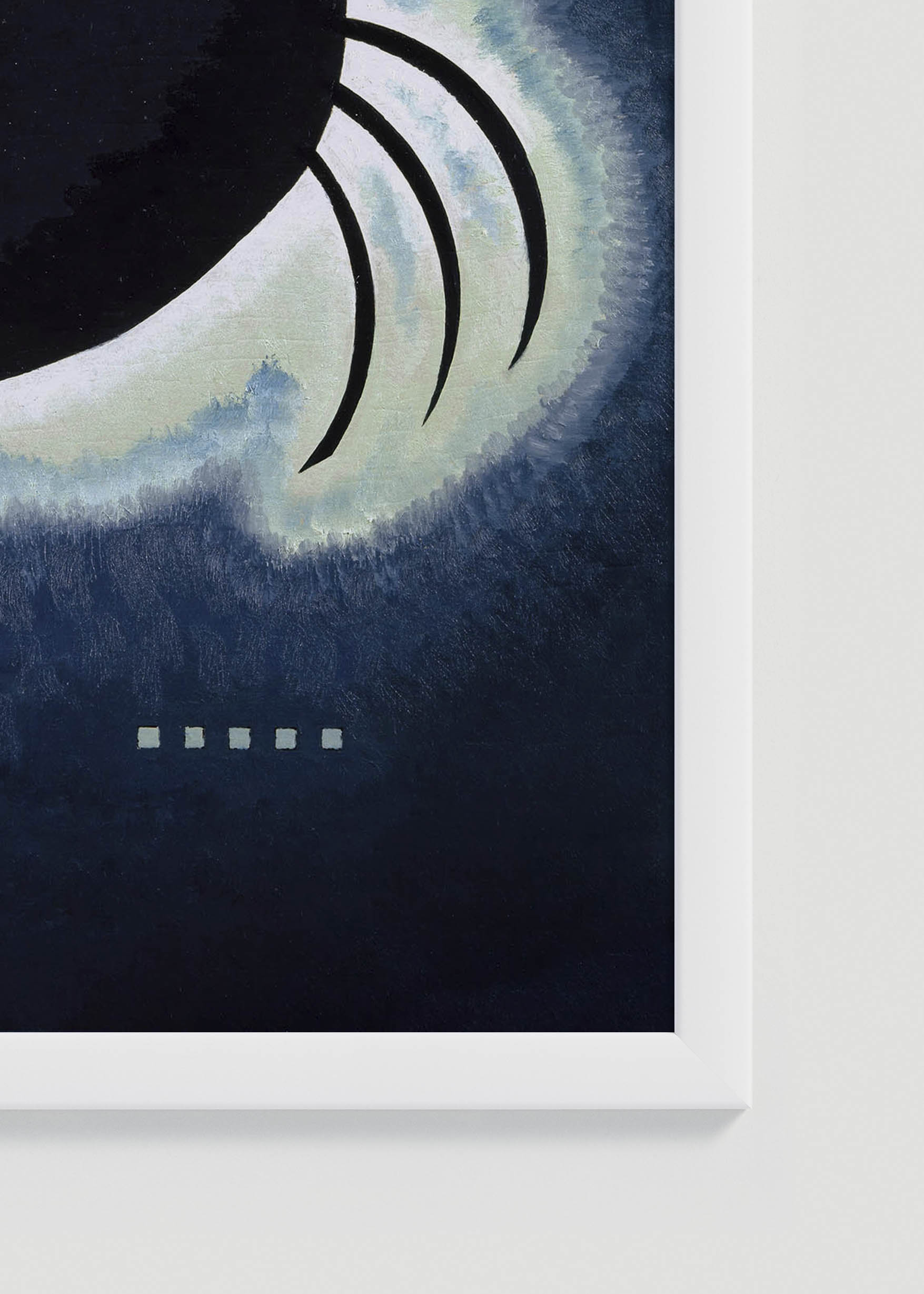 Plakat przedstawiający dzieło Wassily’ego Kandinsky’ego Spiczasta czerń lub Spiczasty czarny (Spitzes Schwarz) z 1931 r. to prawdziwa uczta dla miłośników abstrakcyjnego ekspresjonizmu i awangardowej sztuki XX wieku. Ten reprint ukazuje charakterystyczną dla rosyjskiego mistrza kompozycję geometryczną, gdzie trójkąty, koła i linie przecinają się w rytmicznym tańcu form. Kandinsky, jeden z pionierów abstrakcji, tworzył swoje dzieła kierując się teorią synestezji – przekonaniem, że kolory mogą wywoływać dźwięki, a kształty – emocje.