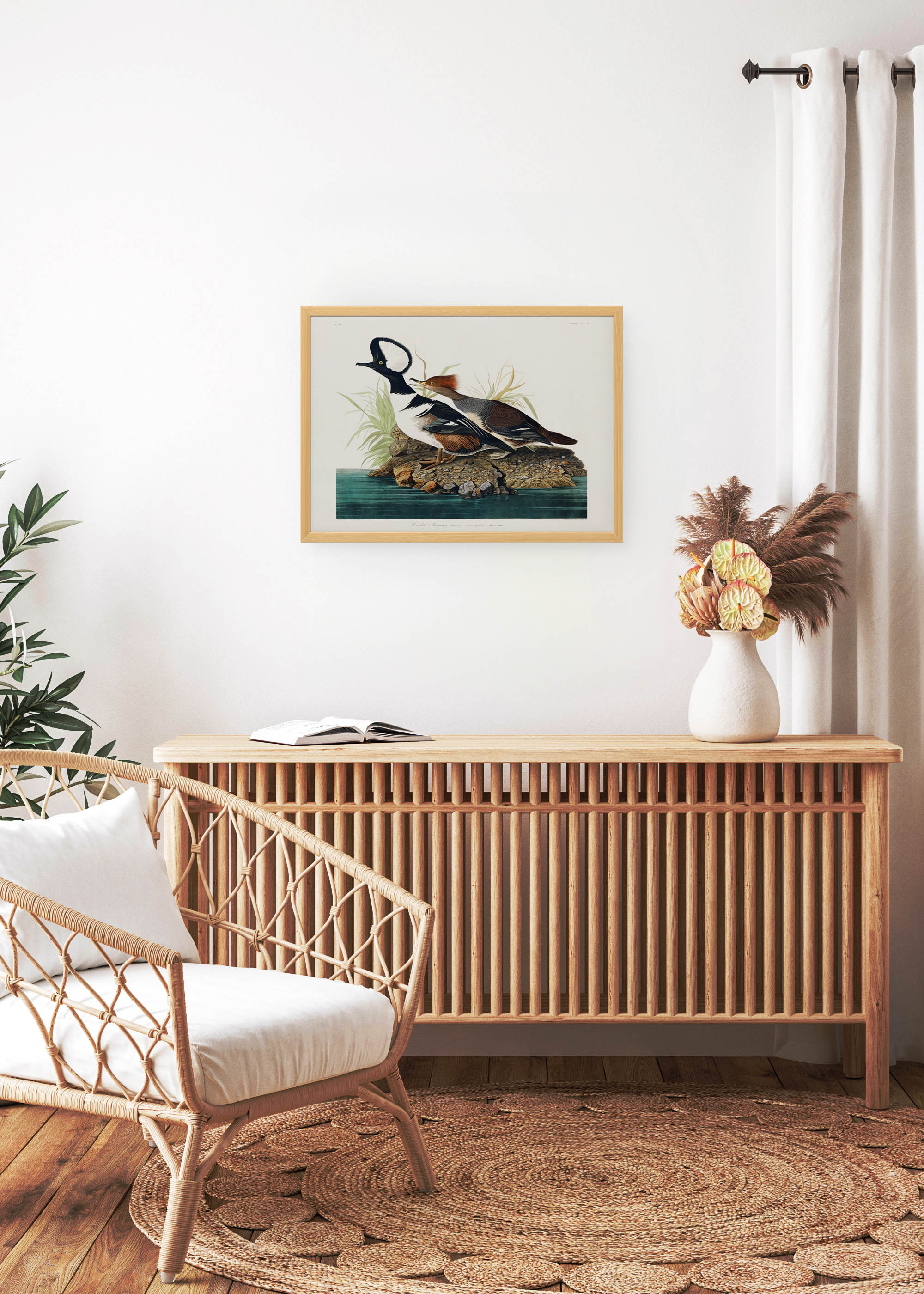 Plakat jest wierną reprodukcją jednej z najsłynniejszych ilustracji z monumentalnego dzieła Johna Jamesa Audubona „Birds of America”, powstałego w latach 1827-1838. Ten amerykański ornitolog i malarz poświęcił życie dokumentowaniu ptaków Ameryki Północnej, tworząc 435 akwarel w naturalnej wielkości. Co ciekawe, Audubon często pozował ptaki za pomocą drutów, aby uchwycić ich naturalne pozy – technika rewolucyjna jak na tamte czasy!