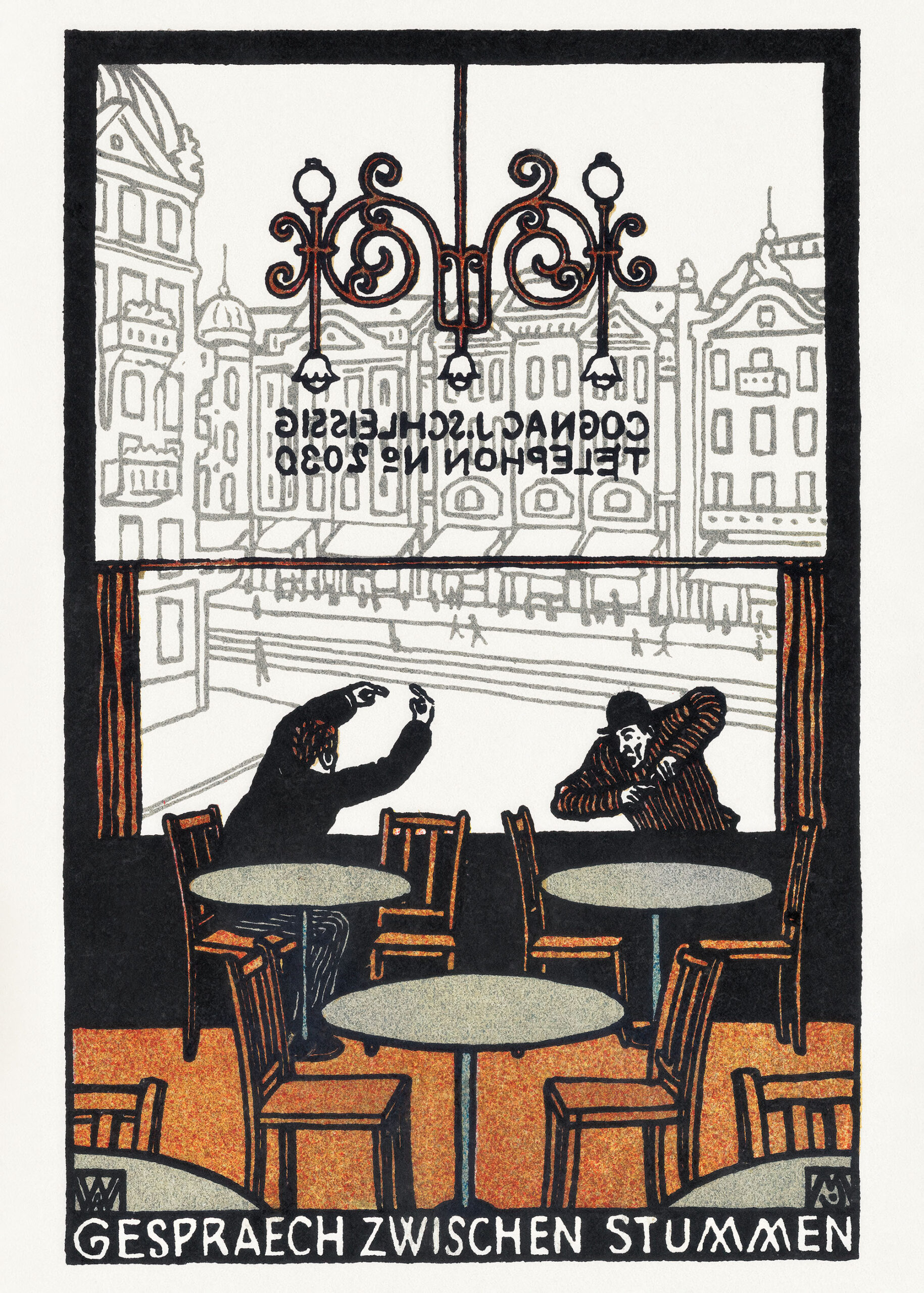 Plakat kawiarnia Gespräch zwischen Stummen Moriz Jung secesja