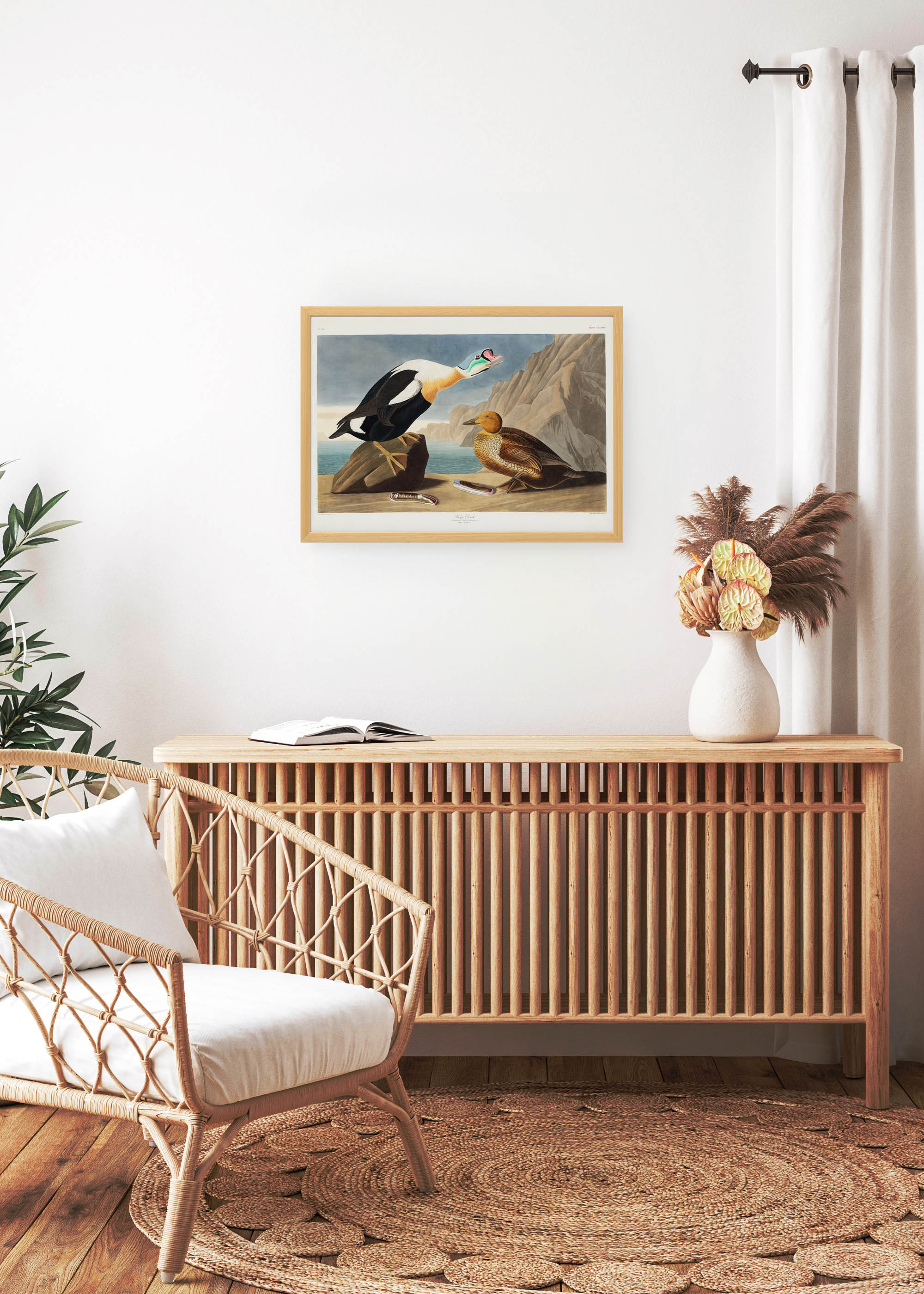 Ten niezwykły plakat przedstawia jedną z najbardziej rozpoznawalnych ilustracji z monumentalnego dzieła „Birds of America” Johna Jamesa Audubona. Oryginalna rycina pochodzi z lat 1827-1838, kiedy to artysta-przyrodnik poświęcił dwadzieścia lat życia na dokumentowanie ptactwa Ameryki Północnej. Audubon, francuski emigrant o niespokojnym duchu, przemierzał dzikie ostępy kontynentu, by uchwycić każdy gatunek w jego naturalnym środowisku.
