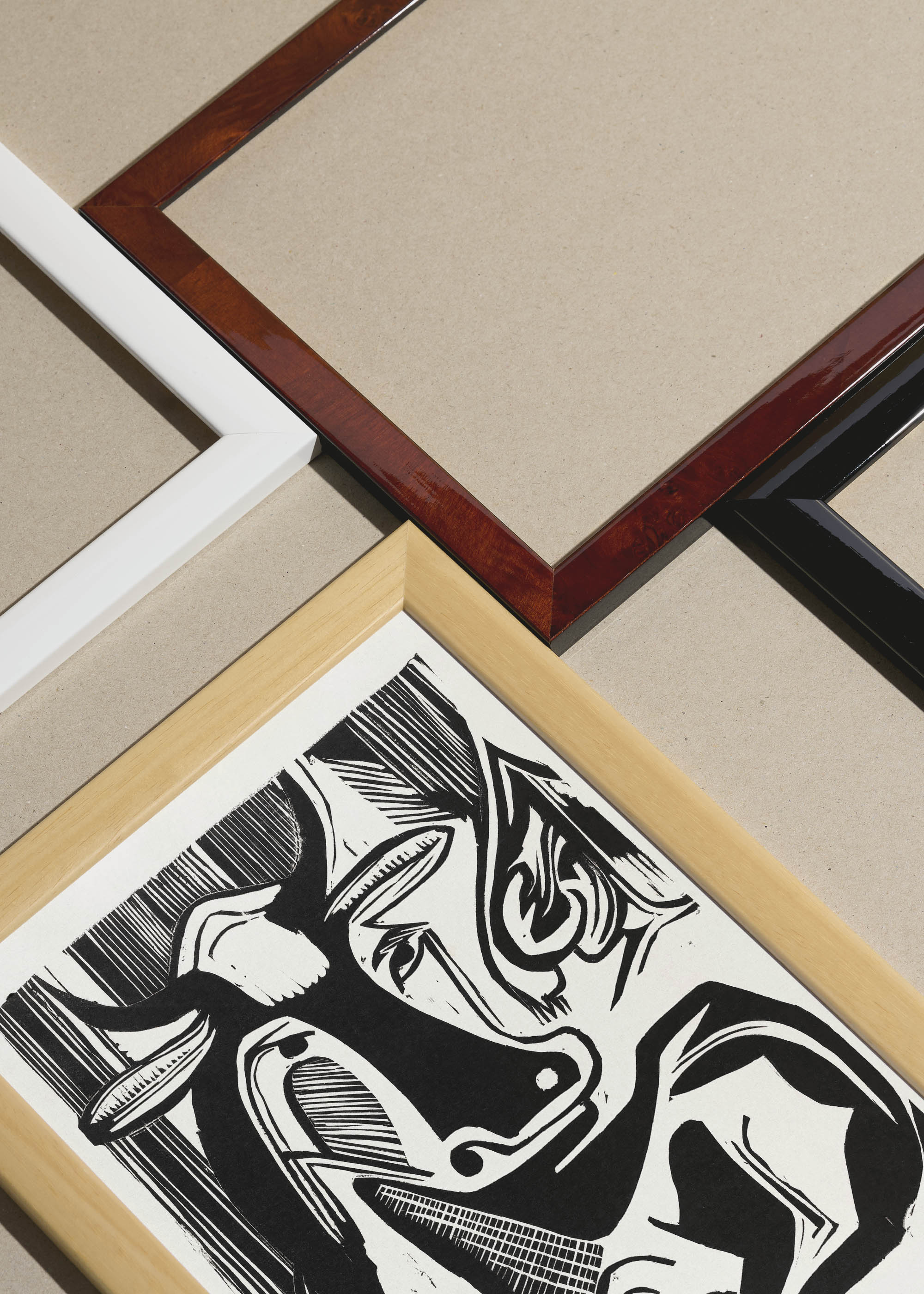 Packshot ramek Plakatello® wykonanych z włoskich i polskich listew ramiarskich. Ramy tworzone ręcznie w pracowni w Lublinie z wykorzystaniem tradycyjnych manualnych narzędzi. Każda rama jest indywidualnie wykańczana i kontrolowana przed wysyłką. Szeroka paleta kolorów pozwala dobrać idealną oprawę do plakatów i obrazów.