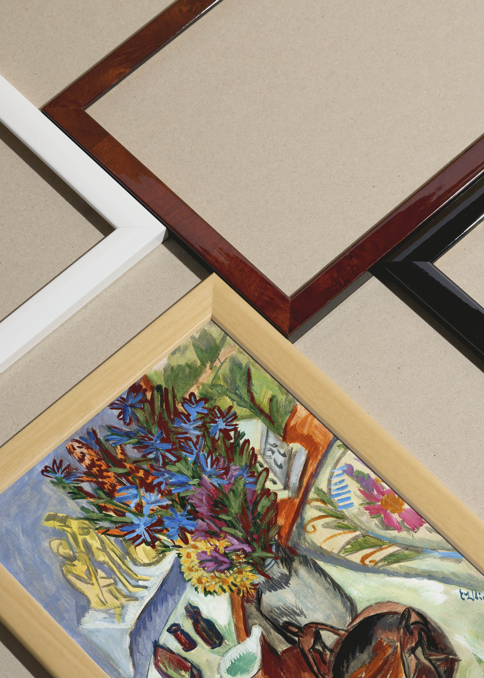 Packshot ramek Plakatello® wykonanych z włoskich i polskich listew ramiarskich. Ramy tworzone ręcznie w pracowni w Lublinie z wykorzystaniem tradycyjnych manualnych narzędzi. Każda rama jest indywidualnie wykańczana i kontrolowana przed wysyłką. Szeroka paleta kolorów pozwala dobrać idealną oprawę do plakatów i obrazów.