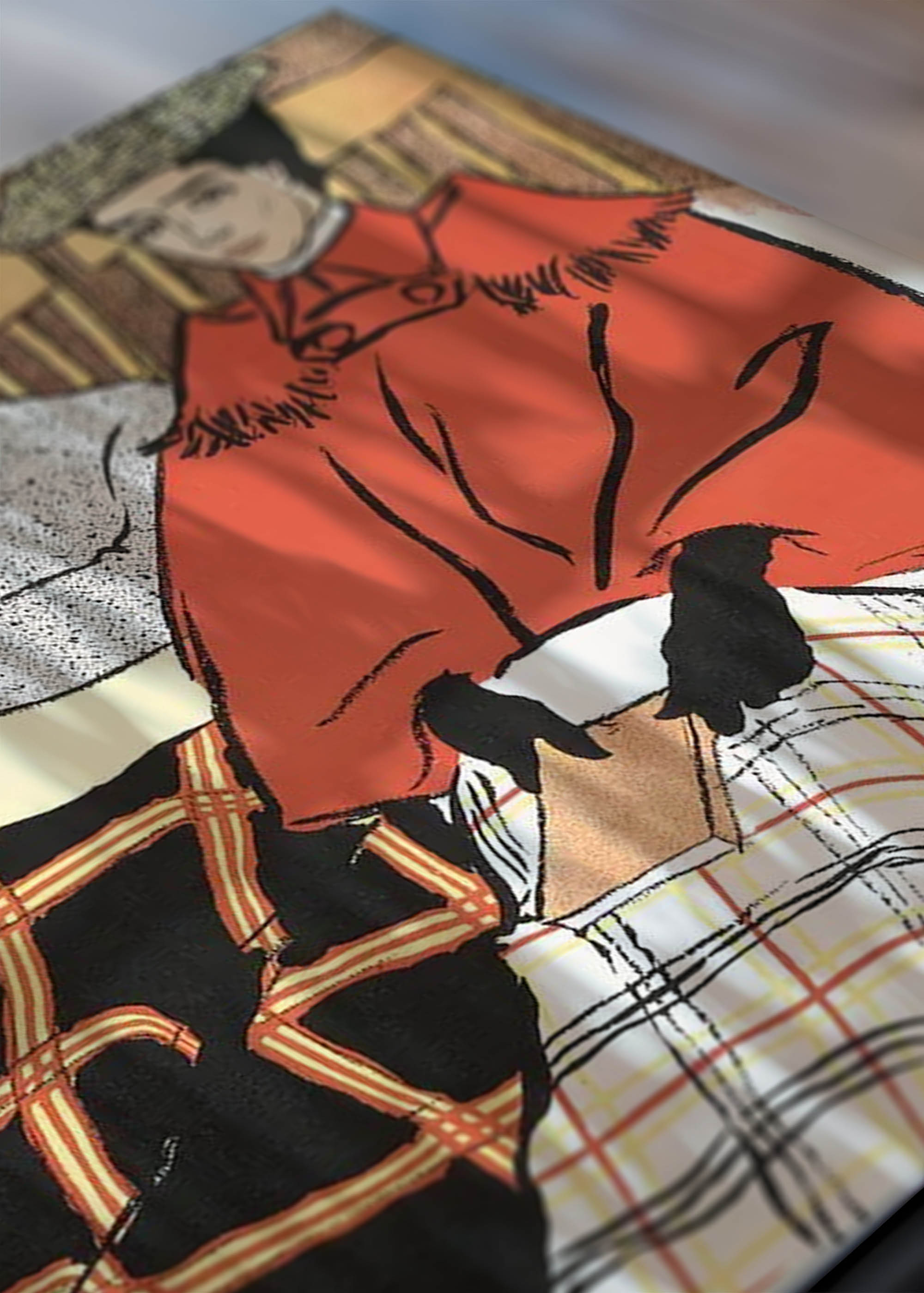 Fotografia z sesji zdjęciowej w pracowni Plakatello® w Lublinie. Właściciel w sytuacji roboczej, trzymający wydruki plakatów. Polska marka plakatów dekoracyjnych, gdzie wszystkie produkty powstają z dbałością o najmniejszy szczegół. Od druku po oprawę – każdy plakat przechodzi przez ręce zespołu, gwarantując najwyższą jakość.
