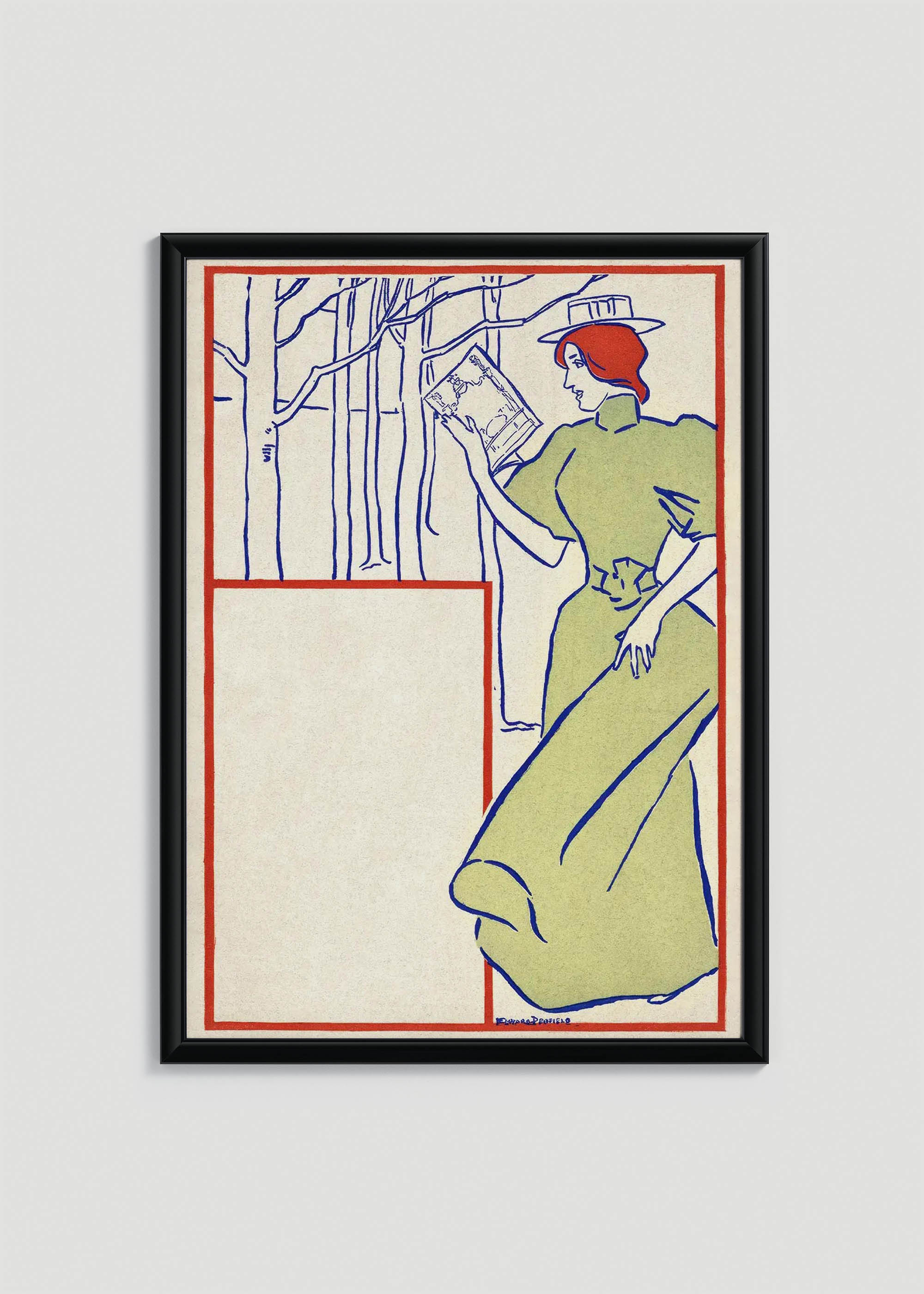 Plakat Kobieta w zielonej sukni czytająca książkę (1895)