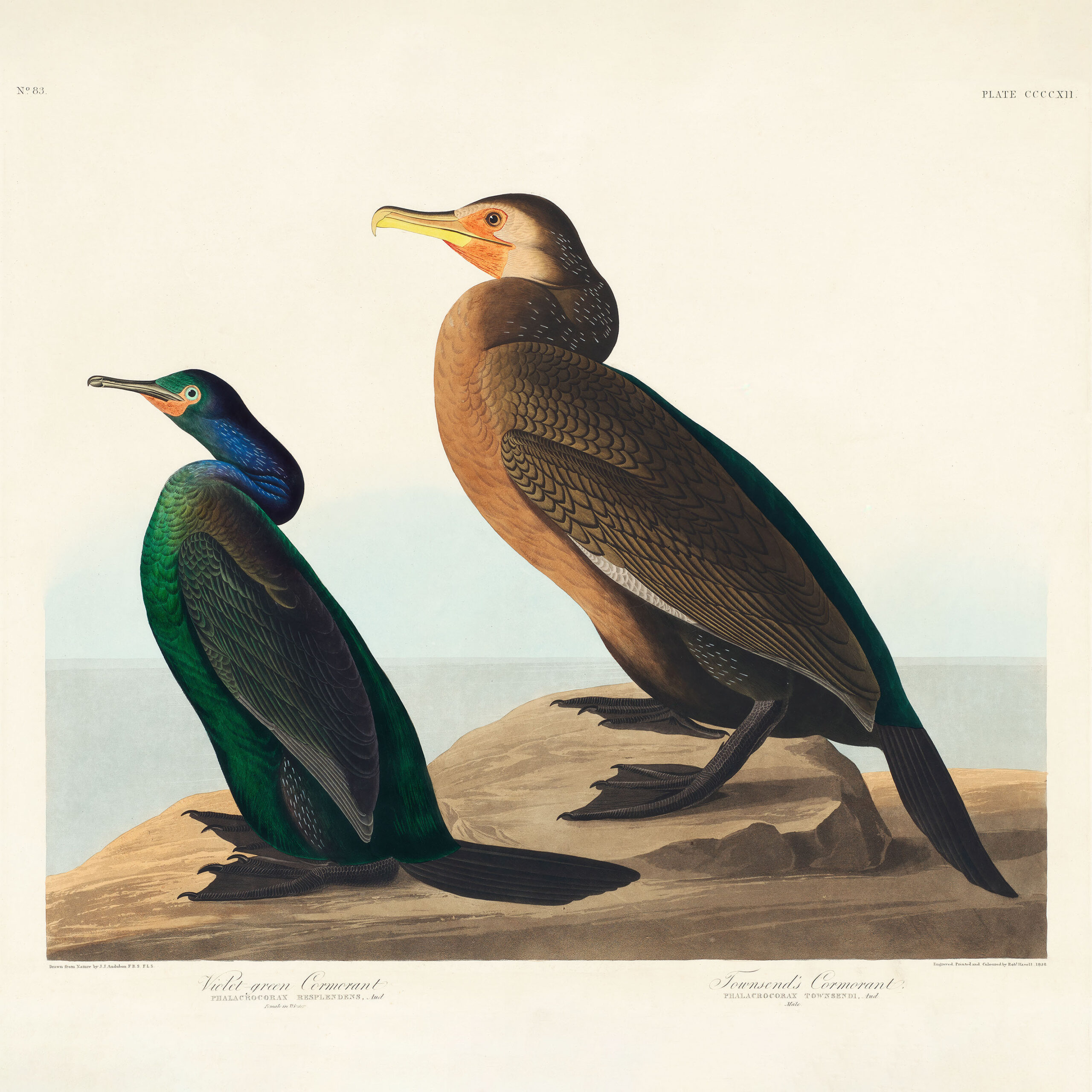 Plakat Kormoran czubaty i townsend – John James Audubon