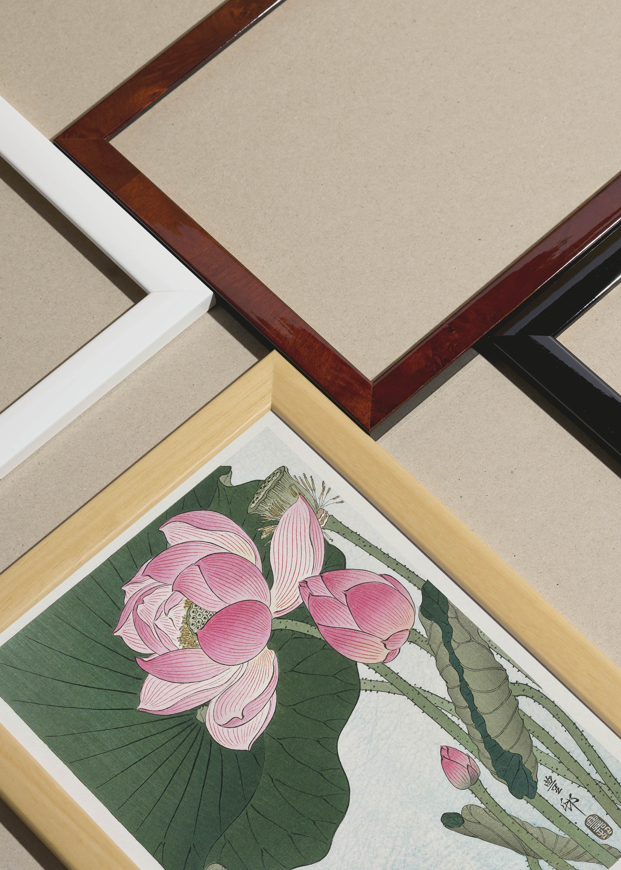 Packshot ramek Plakatello® wykonanych z włoskich i polskich listew ramiarskich. Ramy tworzone ręcznie w pracowni w Lublinie z wykorzystaniem tradycyjnych manualnych narzędzi. Każda rama jest indywidualnie wykańczana i kontrolowana przed wysyłką. Szeroka paleta kolorów pozwala dobrać idealną oprawę do plakatów i obrazów.