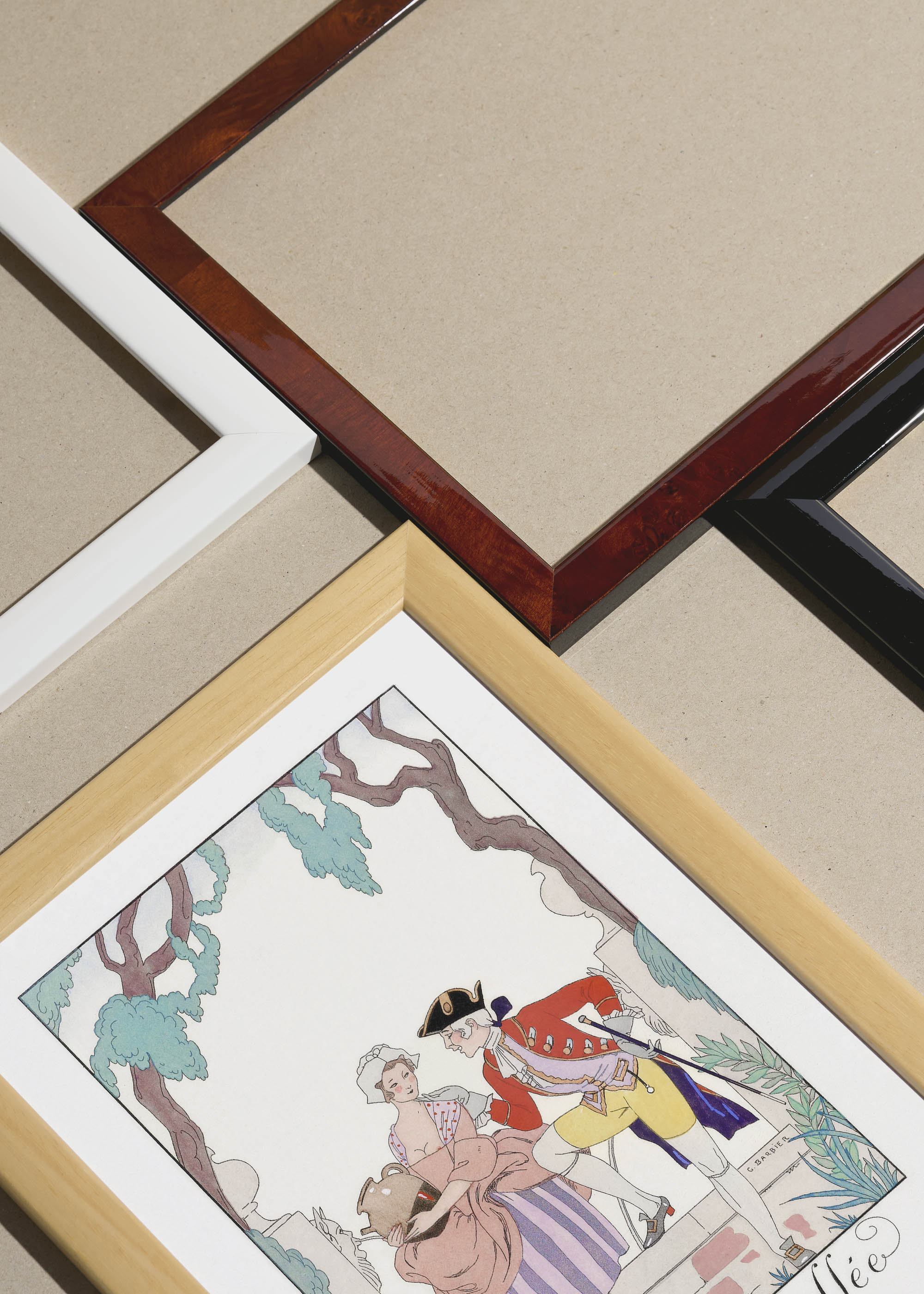 Packshot ramek Plakatello® wykonanych z włoskich i polskich listew ramiarskich. Ramy tworzone ręcznie w pracowni w Lublinie z wykorzystaniem tradycyjnych manualnych narzędzi. Każda rama jest indywidualnie wykańczana i kontrolowana przed wysyłką. Szeroka paleta kolorów pozwala dobrać idealną oprawę do plakatów i obrazów.