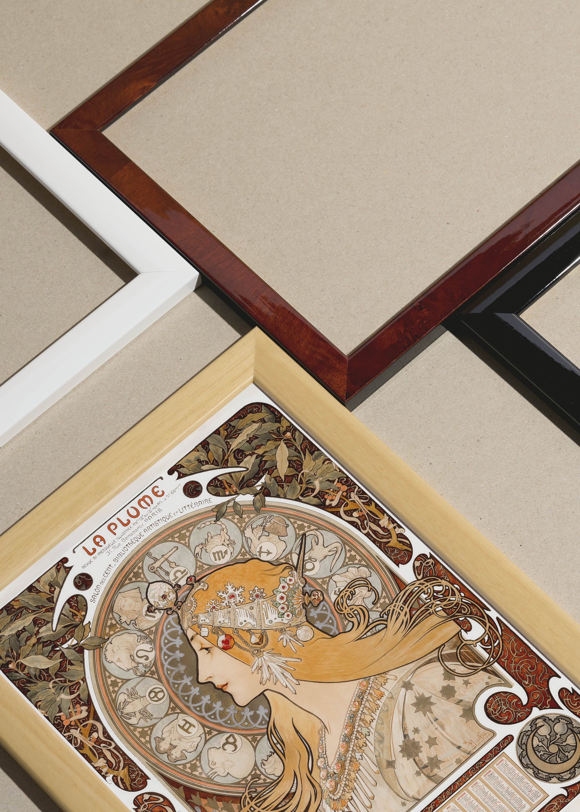 Packshot ramek Plakatello® wykonanych z włoskich i polskich listew ramiarskich. Ramy tworzone ręcznie w pracowni w Lublinie z wykorzystaniem tradycyjnych manualnych narzędzi. Każda rama jest indywidualnie wykańczana i kontrolowana przed wysyłką. Szeroka paleta kolorów pozwala dobrać idealną oprawę do plakatów i obrazów.