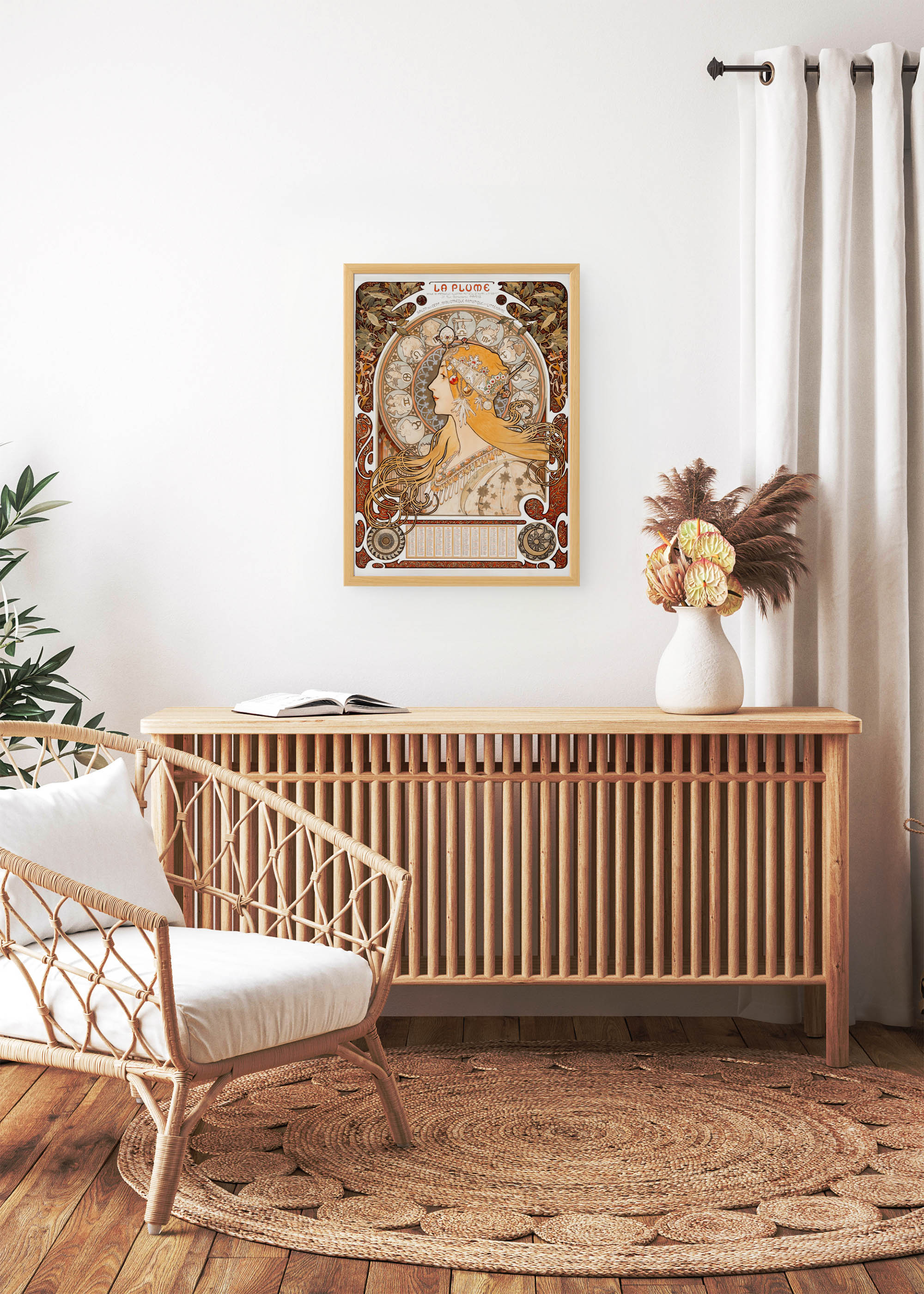Ten wyjątkowy plakat będący reprintem wzoru autorstwa mistrza secesji idealnie komponuje się z wnętrzami w stylu art nouveau, boho czy vintage. Szczególnie efektownie prezentuje się w pomieszczeniach z naturalnymi materiałami – drewnem dębowym, lnianymi tkaninami czy plecionymi dodatkami. Plakatello poleca tę reprodukcję do gabinetów, bibliotek czy sypialni urządzonych w ciepłych, przytulnych tonacjach, gdzie stanie się centralnym punktem aranżacji, przyciągając wzrok finezyjną grą linii i hypnotyzującym pięknem secesyjnej muzy.