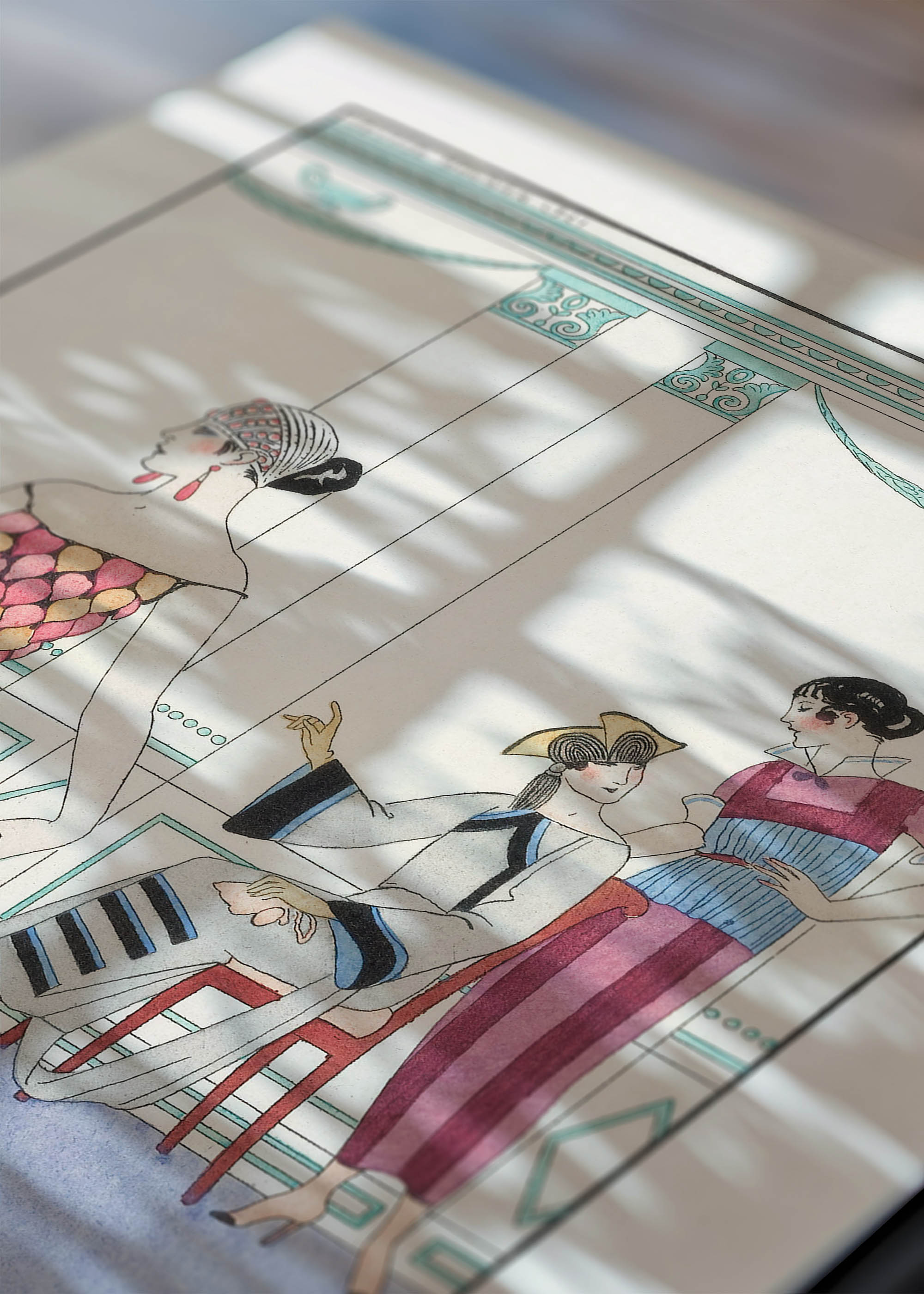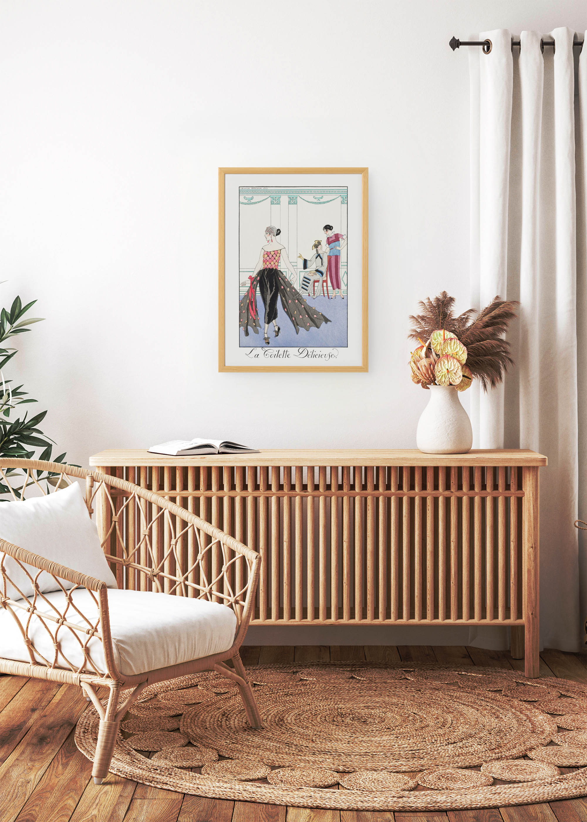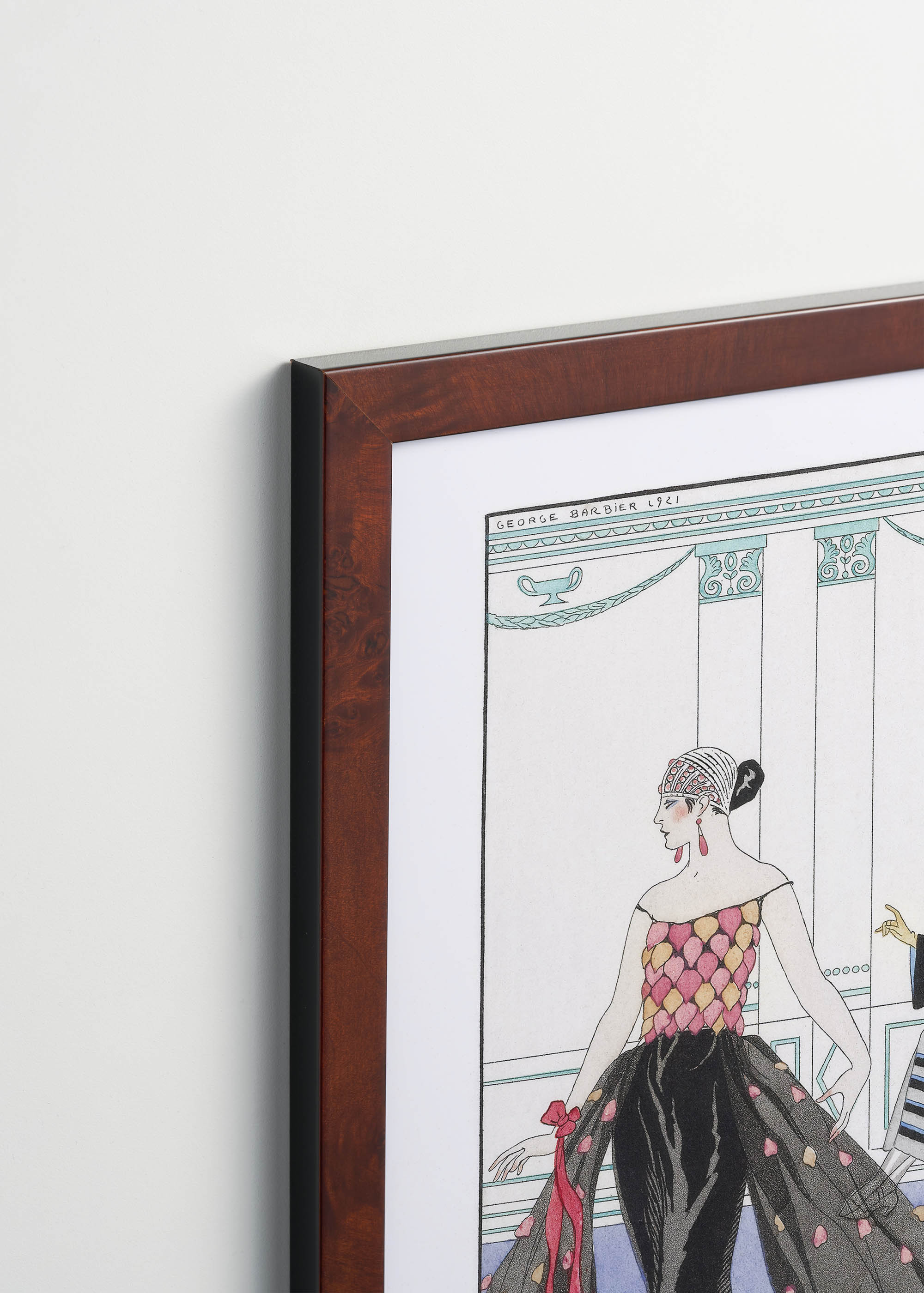 „La Toilette Délicieuse” – wyrafinowana ilustracja George’a Barbiera z 1921 roku, która przenosi nas wprost do eleganckich paryskich salonów mody lat dwudziestych. Ten francuski grafik i ilustrator, urodzony w Nantes w 1882 roku, zasłynął jako jeden z najwybitniejszych przedstawicieli stylu Art Deco. Barbier tworzył dla najznamienitszych domów mody, współpracując z takimi gigantami jak Paul Poiret czy Jeanne Paquin. Ciekawostką jest, że artysta czerpał inspirację z antycznych waz greckich, co wyraźnie widać w linearnym, klasycznym sposobie przedstawiania postaci.