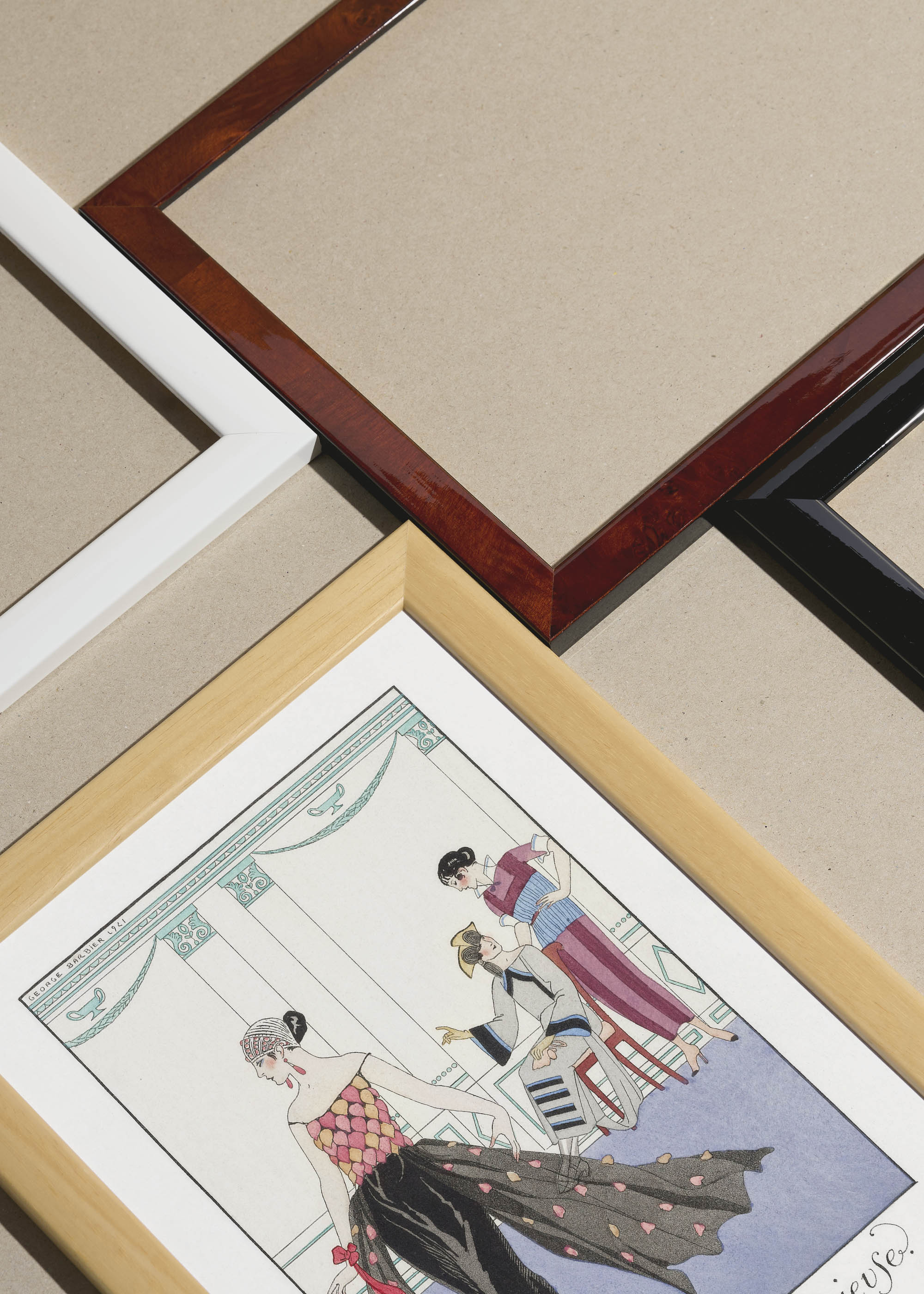 Packshot ramek Plakatello® wykonanych z włoskich i polskich listew ramiarskich. Ramy tworzone ręcznie w pracowni w Lublinie z wykorzystaniem tradycyjnych manualnych narzędzi. Każda rama jest indywidualnie wykańczana i kontrolowana przed wysyłką. Szeroka paleta kolorów pozwala dobrać idealną oprawę do plakatów i obrazów.