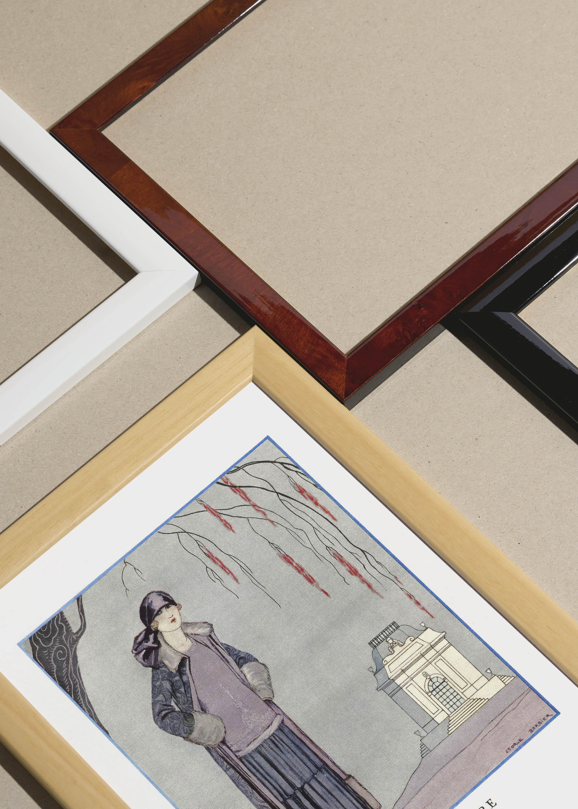 Packshot ramek Plakatello® wykonanych z włoskich i polskich listew ramiarskich. Ramy tworzone ręcznie w pracowni w Lublinie z wykorzystaniem tradycyjnych manualnych narzędzi. Każda rama jest indywidualnie wykańczana i kontrolowana przed wysyłką. Szeroka paleta kolorów pozwala dobrać idealną oprawę do plakatów i obrazów.