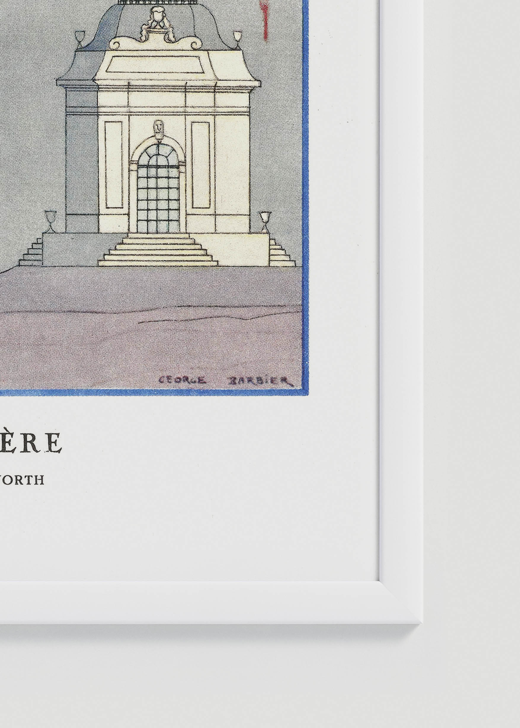 „Le Belvédère” – wykwintna ilustracja autorstwa George’a Barbiera, jednego z najwybitniejszych przedstawicieli stylu Art Deco w grafice modowej. Ten francuski artysta, aktywny w latach 1912-1932, zasłynął jako kronikarz paryskiej elegancji, współpracując z najznamienitszymi domami mody, w tym z legendarnym Worthem. Barbier tworzył swoje prace w złotej erze haute couture, kiedy moda stała się sztuką samą w sobie, a jego ilustracje regularnie zdobiły łamy prestiżowych magazynów jak „Gazette du Bon Ton” czy „Journal des Dames et des Modes”.