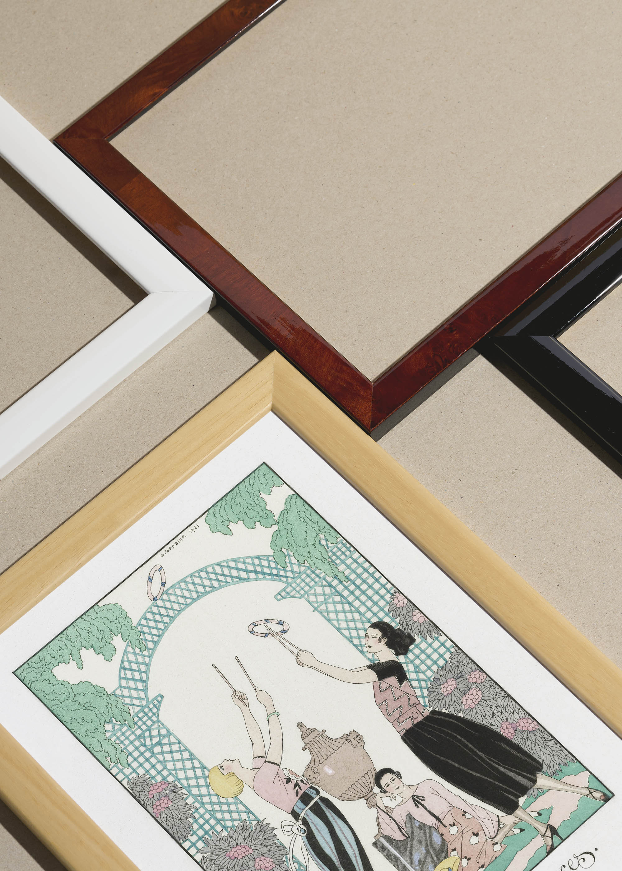 Packshot ramek Plakatello® wykonanych z włoskich i polskich listew ramiarskich. Ramy tworzone ręcznie w pracowni w Lublinie z wykorzystaniem tradycyjnych manualnych narzędzi. Każda rama jest indywidualnie wykańczana i kontrolowana przed wysyłką. Szeroka paleta kolorów pozwala dobrać idealną oprawę do plakatów i obrazów.
