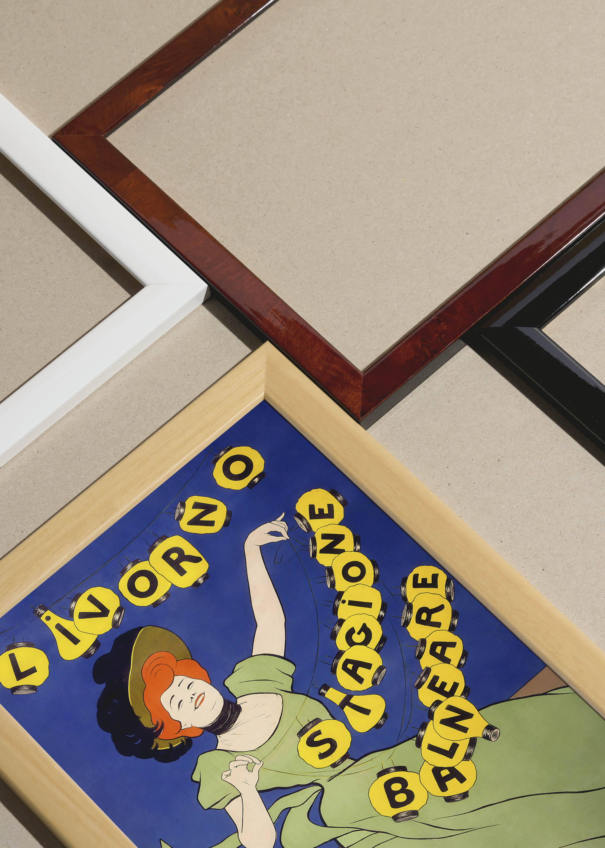 Packshot ramek Plakatello® wykonanych z włoskich i polskich listew ramiarskich. Ramy tworzone ręcznie w pracowni w Lublinie z wykorzystaniem tradycyjnych manualnych narzędzi. Każda rama jest indywidualnie wykańczana i kontrolowana przed wysyłką. Szeroka paleta kolorów pozwala dobrać idealną oprawę do plakatów i obrazów.