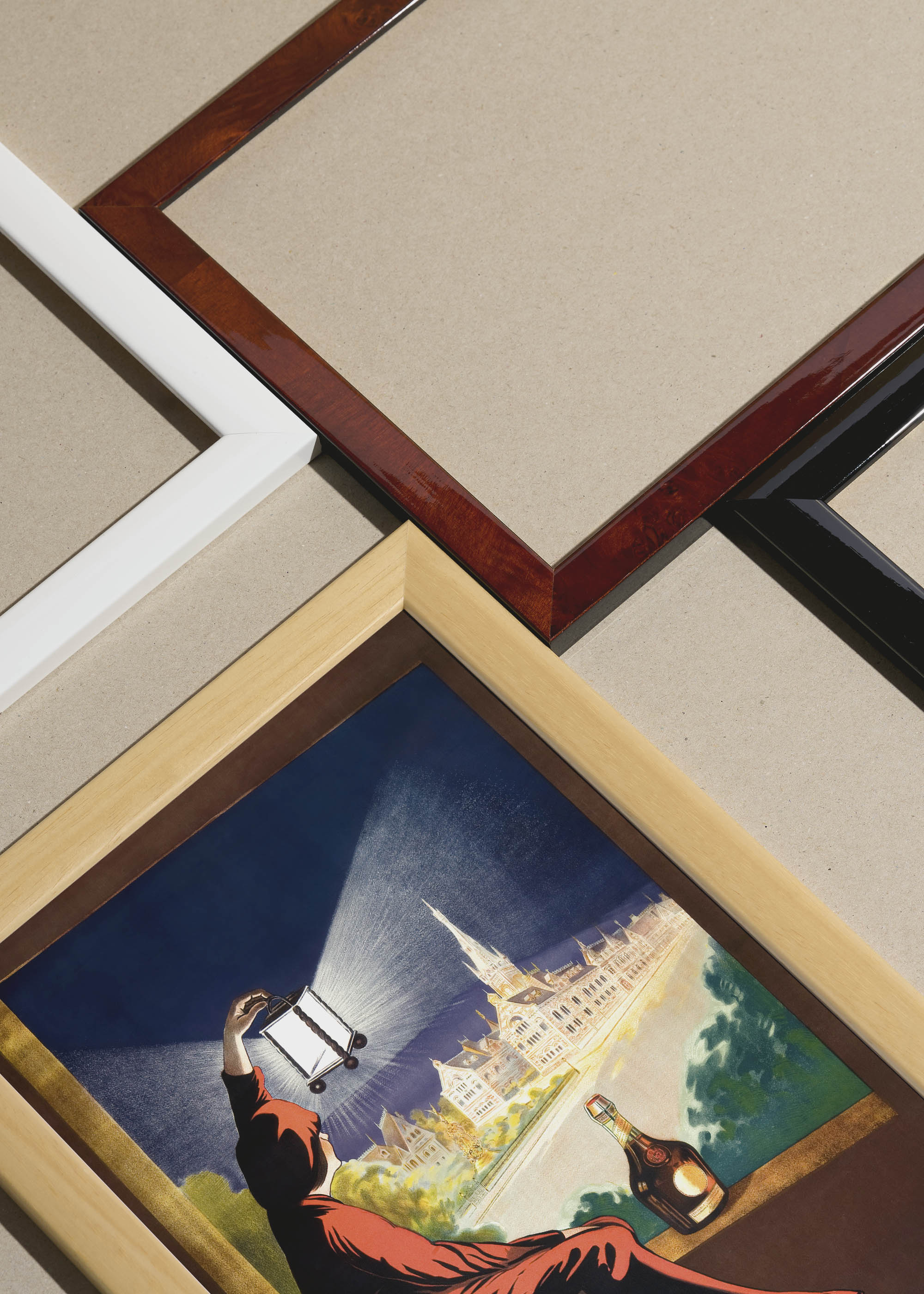 Packshot ramek Plakatello® wykonanych z włoskich i polskich listew ramiarskich. Ramy tworzone ręcznie w pracowni w Lublinie z wykorzystaniem tradycyjnych manualnych narzędzi. Każda rama jest indywidualnie wykańczana i kontrolowana przed wysyłką. Szeroka paleta kolorów pozwala dobrać idealną oprawę do plakatów i obrazów.