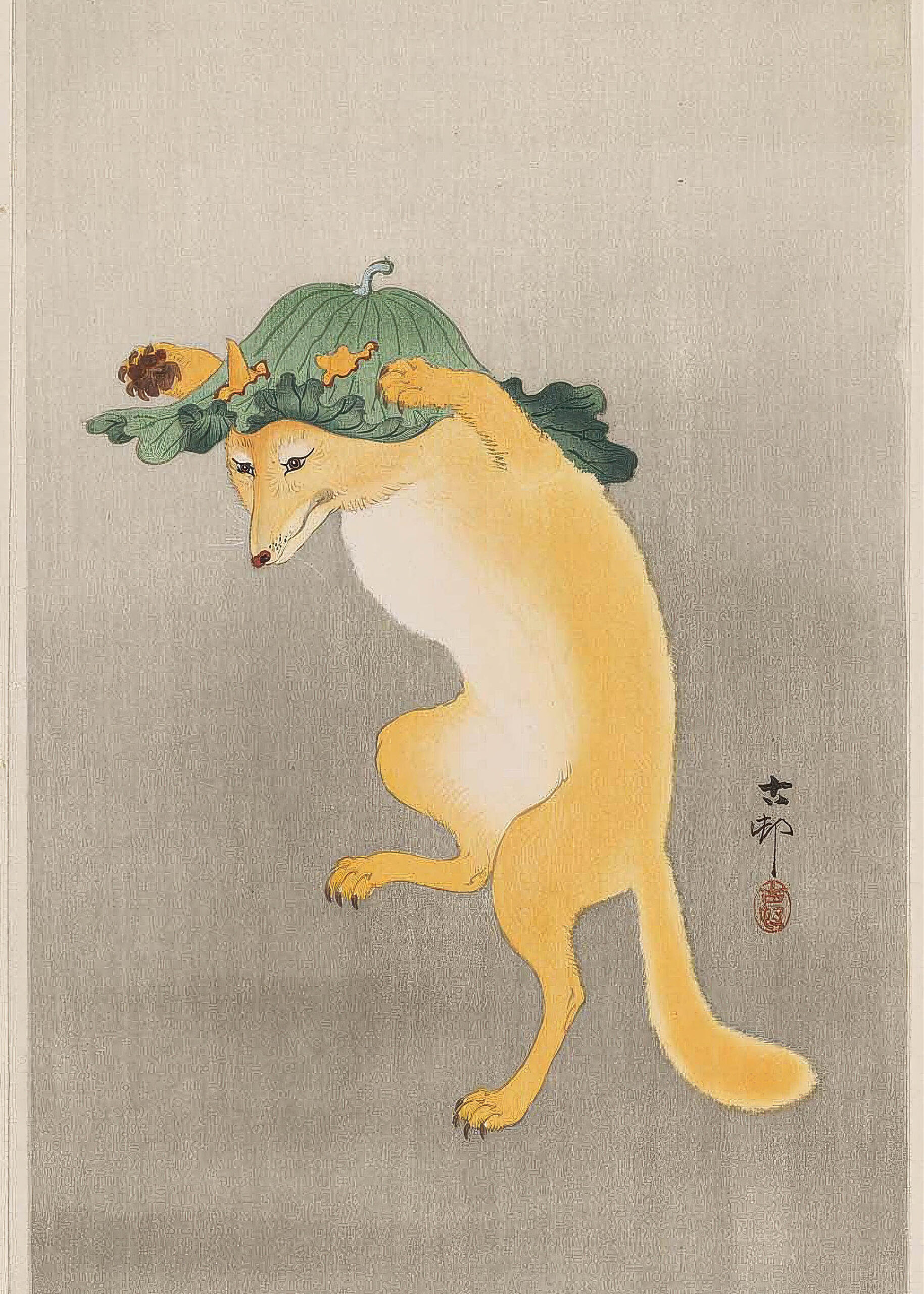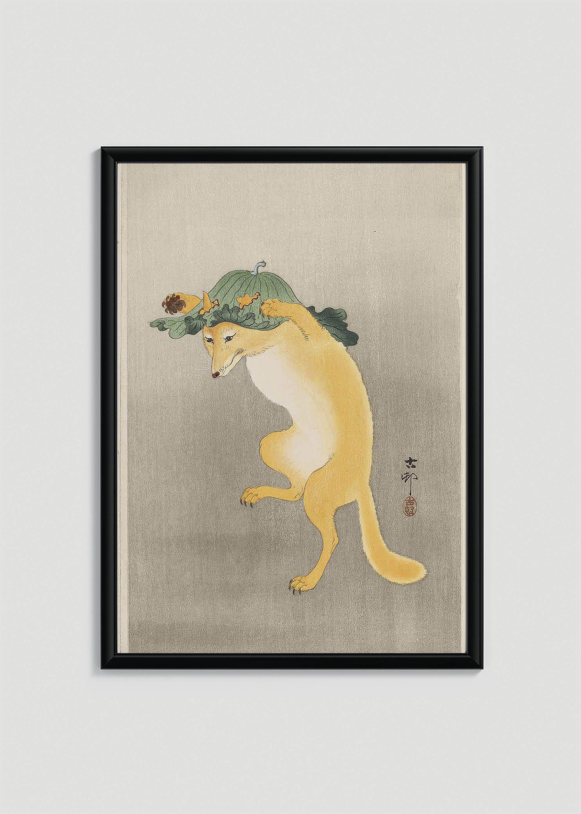 Plakat Lis w kapeluszu Ohara Koson japoński humorystyczny