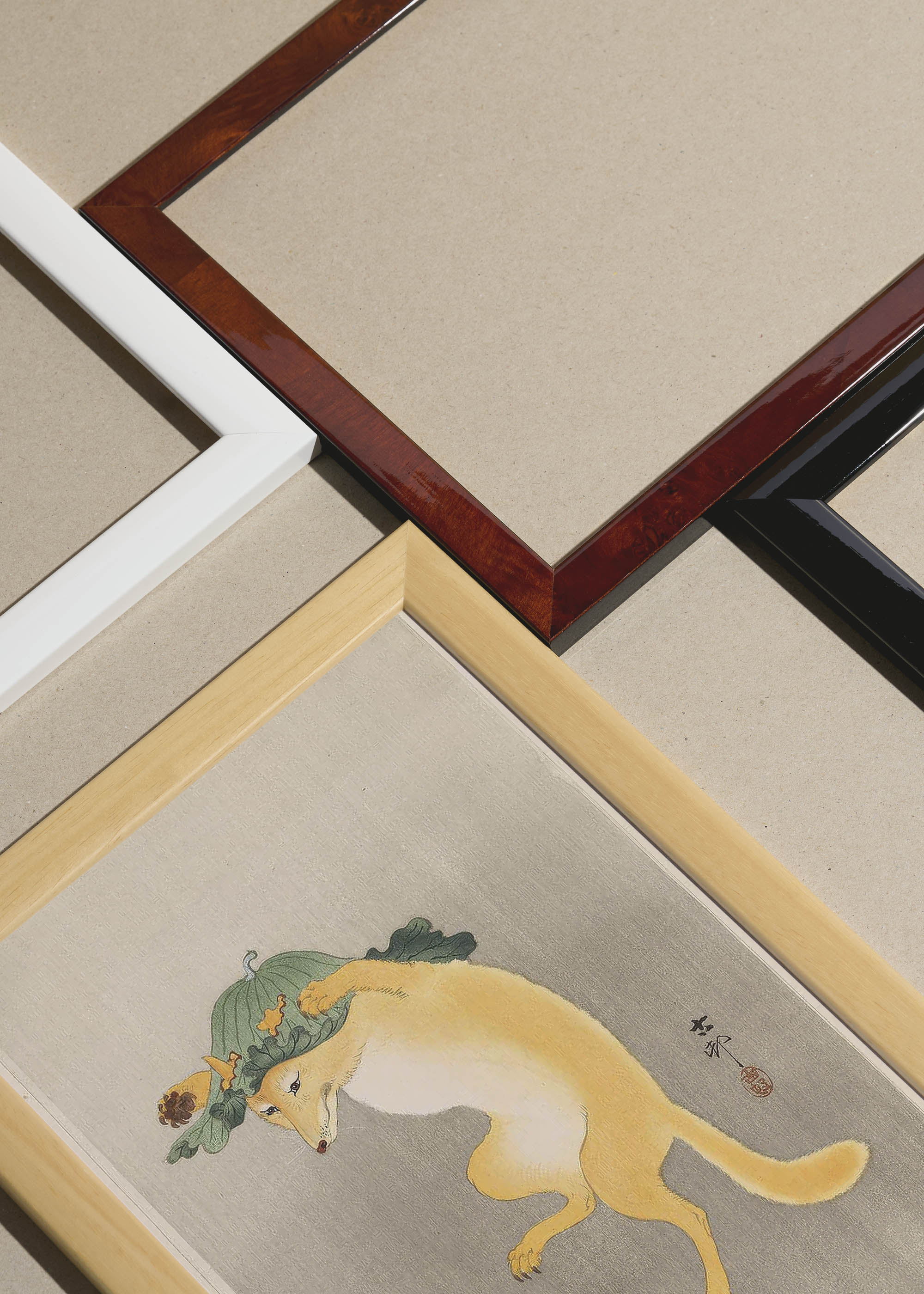 Packshot ramek Plakatello® wykonanych z włoskich i polskich listew ramiarskich. Ramy tworzone ręcznie w pracowni w Lublinie z wykorzystaniem tradycyjnych manualnych narzędzi. Każda rama jest indywidualnie wykańczana i kontrolowana przed wysyłką. Szeroka paleta kolorów pozwala dobrać idealną oprawę do plakatów i obrazów.