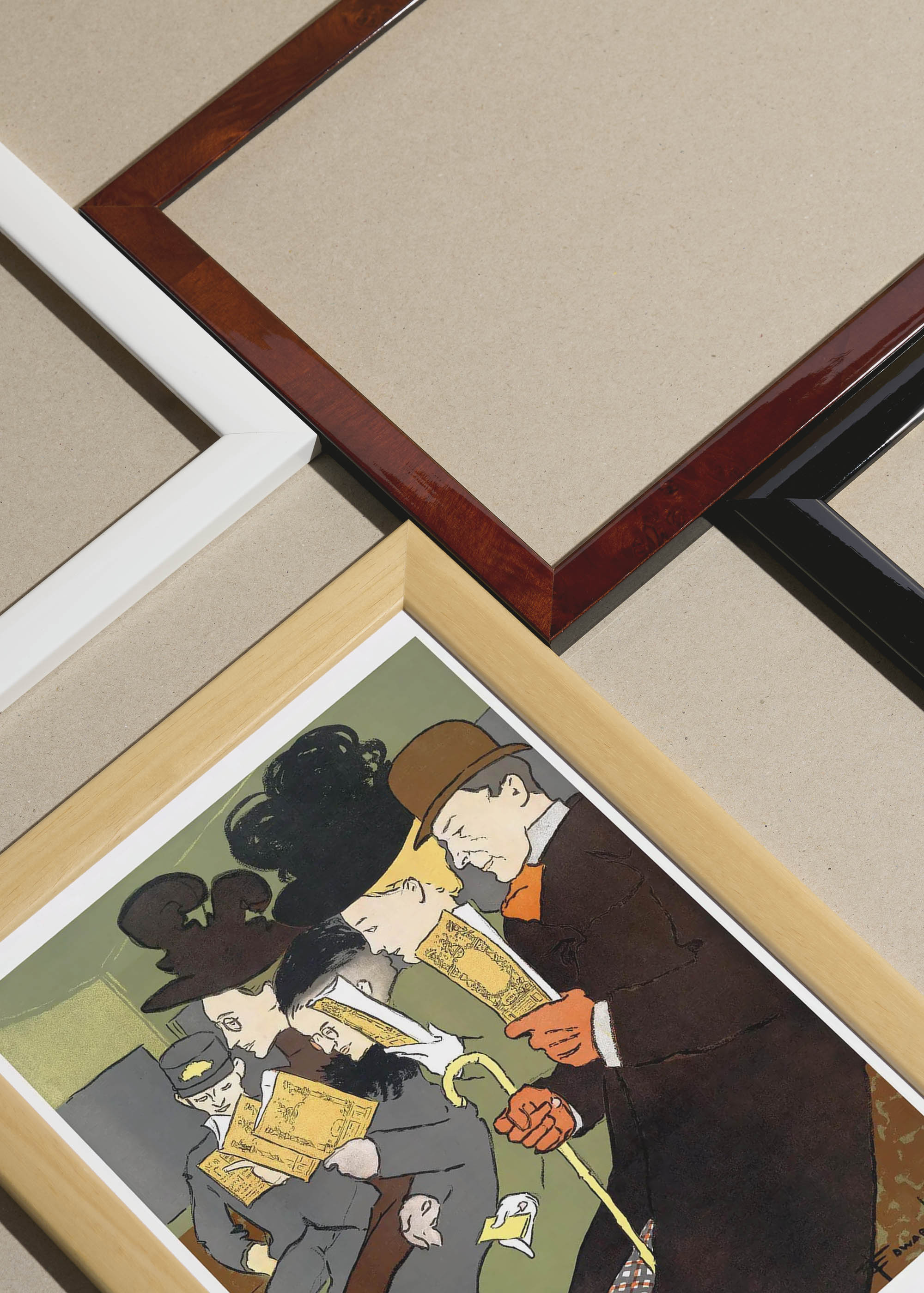 Packshot ramek Plakatello® wykonanych z włoskich i polskich listew ramiarskich. Ramy tworzone ręcznie w pracowni w Lublinie z wykorzystaniem tradycyjnych manualnych narzędzi. Każda rama jest indywidualnie wykańczana i kontrolowana przed wysyłką. Szeroka paleta kolorów pozwala dobrać idealną oprawę do plakatów i obrazów.