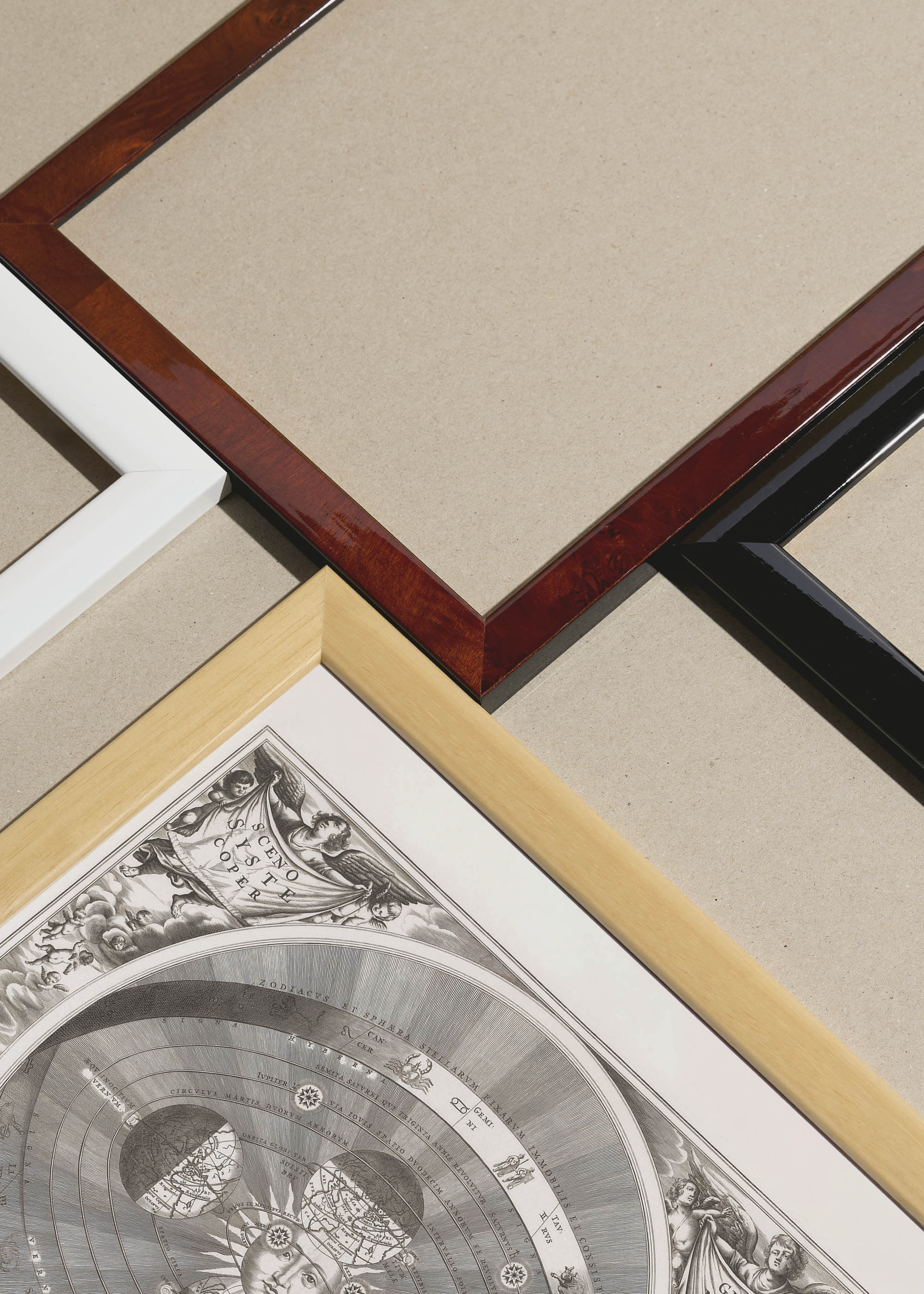 Packshot ramek Plakatello® wykonanych z włoskich i polskich listew ramiarskich. Ramy tworzone ręcznie w pracowni w Lublinie z wykorzystaniem tradycyjnych manualnych narzędzi. Każda rama jest indywidualnie wykańczana i kontrolowana przed wysyłką. Szeroka paleta kolorów pozwala dobrać idealną oprawę do plakatów i obrazów.