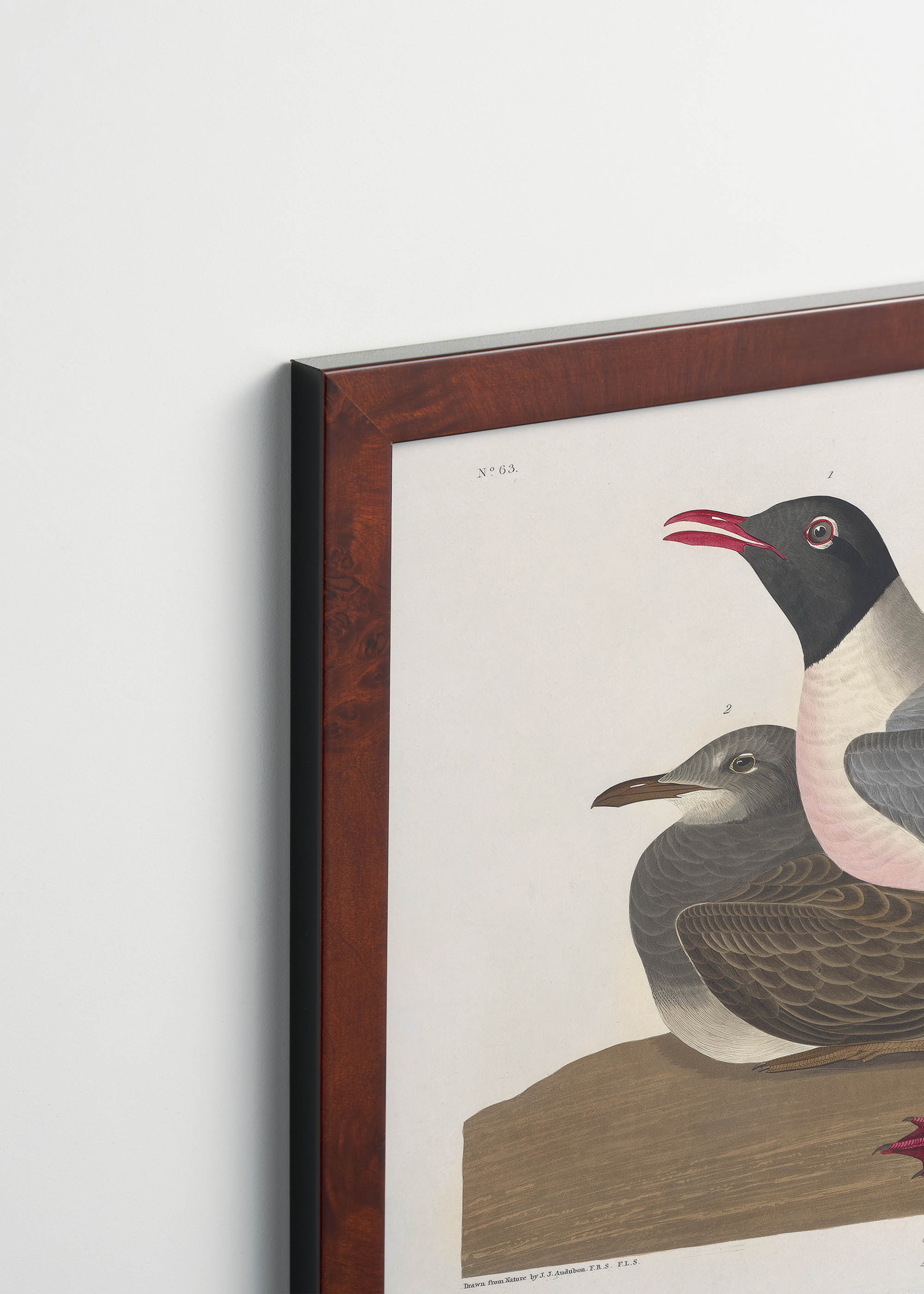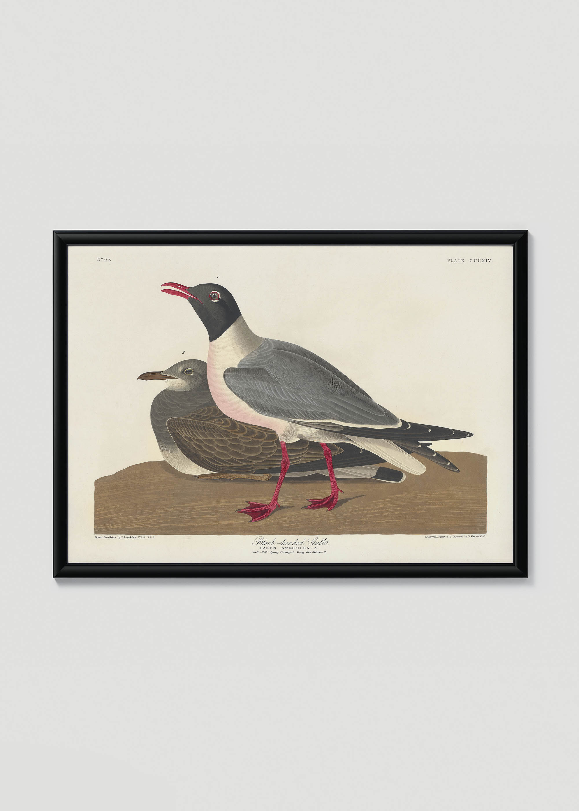 To niezwykłe dzieło pochodzi z monumentalnego albumu „Birds of America” Johna Jamesa Audubona, powstałego w latach 1827-1838. Audubon, francuski artysta-przyrodnik, który większość życia spędził w Ameryce, stworzył najbardziej spektakularne dzieło ornitologiczne w historii. Przedstawiona na plakacie mewa czarnogłowa (Larus atricilla) została uwieczniona z charakterystyczną dla Audubona dbałością o anatomiczne detale – od delikatnego upierzenia po wyraziste czerwone stopy.