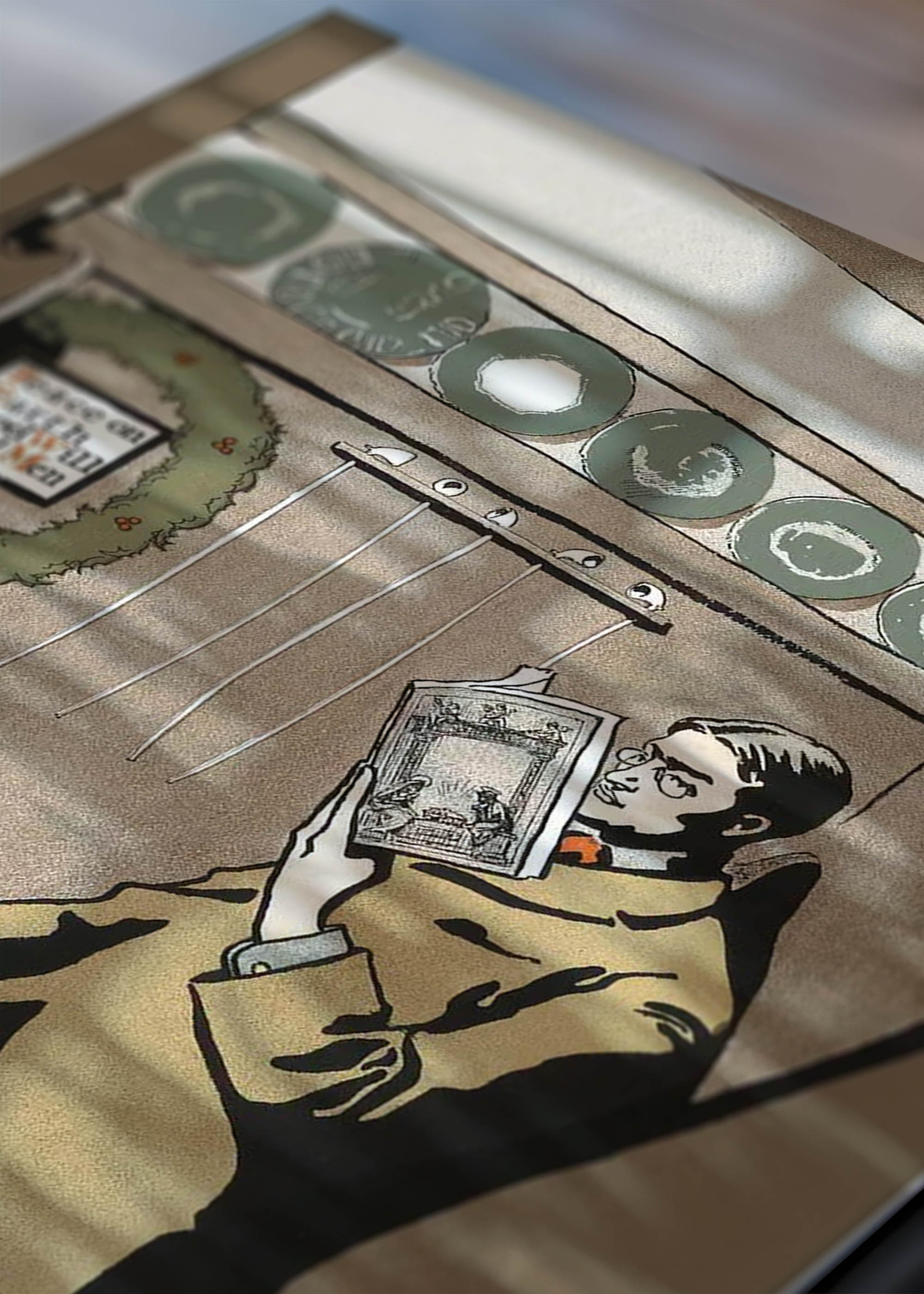 Fotografia z sesji zdjęciowej w pracowni Plakatello® w Lublinie. Właściciel w sytuacji roboczej, trzymający wydruki plakatów. Polska marka plakatów dekoracyjnych, gdzie wszystkie produkty powstają z dbałością o najmniejszy szczegół. Od druku po oprawę – każdy plakat przechodzi przez ręce zespołu, gwarantując najwyższą jakość.