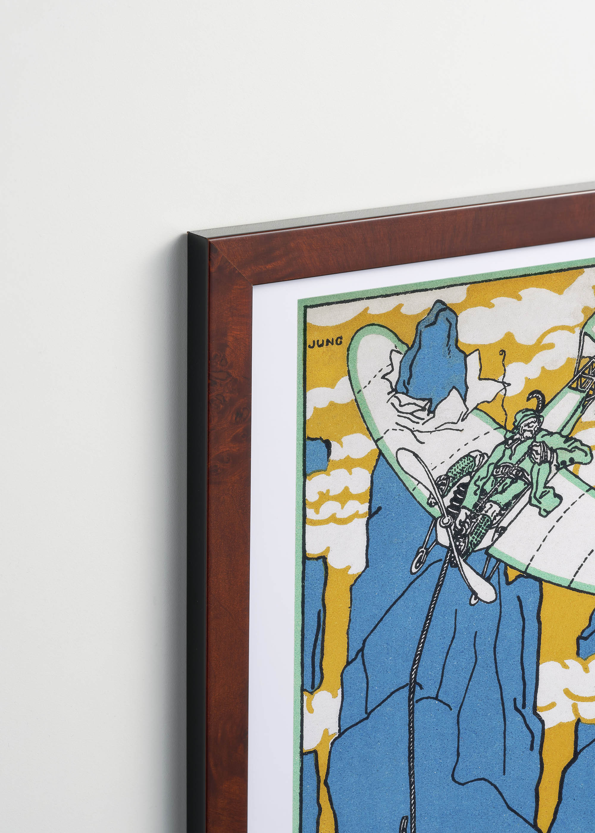 Ten wyjątkowy reprint wzoru autorstwa Junga idealnie wpasuje się w nowoczesne wnętrza o eklektycznym charakterze. Doskonale komponuje się z przestrzeniami utrzymanymi w stylu vintage czy industrialnym, gdzie dominują naturalne materiały i stonowana kolorystyka. Plakatello poleca ten wzór miłośnikom historii lotnictwa, alpinizmu oraz kolekcjonerom sztuki secesyjnej. To prawdziwa perełka dla tych, którzy cenią sobie niebanalne dekoracje ścienne łączące w sobie ducha przygody z artystycznym kunsztem początku XX wieku.