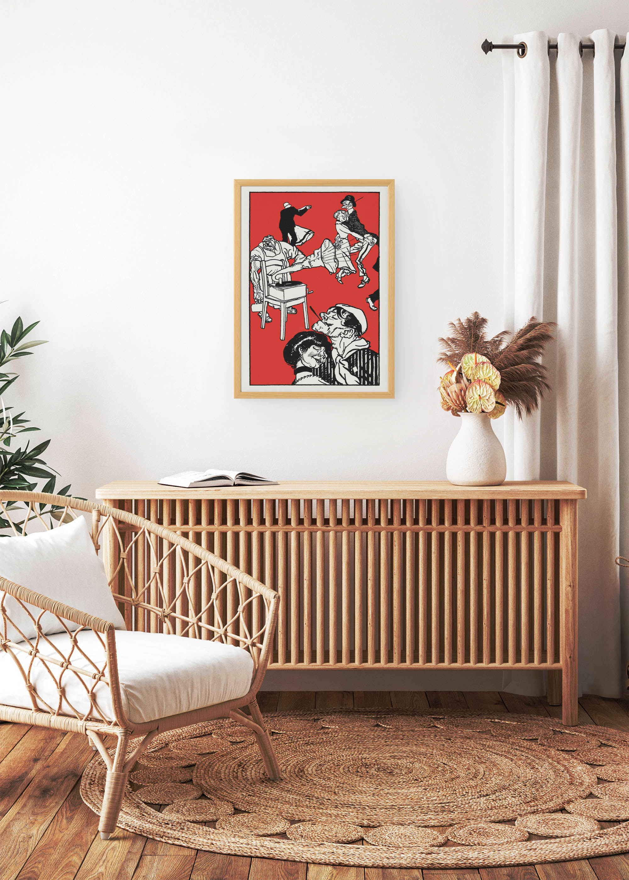Plakat ten idealnie wpisuje się w wnętrza urządzone w stylu eklektycznym lub vintage. Doskonale komponuje się z meblami z ciemnego drewna, aksamitnymi dodatkami w odcieniach burgunda czy butelkowej zieleni. W kolekcji Plakatello stanowi przykład sztuki, która prowokuje i intryguje, będąc jednocześnie dekoracyjnym akcentem o silnym charakterze. To wybór dla miłośników awangardowej grafiki i osób ceniących nieoczywiste rozwiązania aranżacyjne.