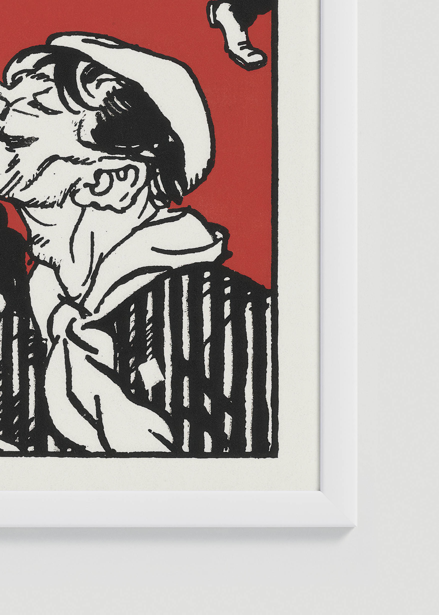 Ten intrygujący plakat przedstawia dzieło austriackiego artysty Moriza Junga, jednego z czołowych przedstawicieli wiedeńskiej secesji i ekspresjonizmu. Jung, urodzony w 1885 roku w Morawii, zasłynął jako ilustrator i grafik tworzący satyryczne przedstawienia społeczeństwa austriackiego początku XX wieku. Jego charakterystyczny styl, łączący groteskę z ostrą krytyką społeczną, doskonale oddaje atmosferę epoki fin de siècle.