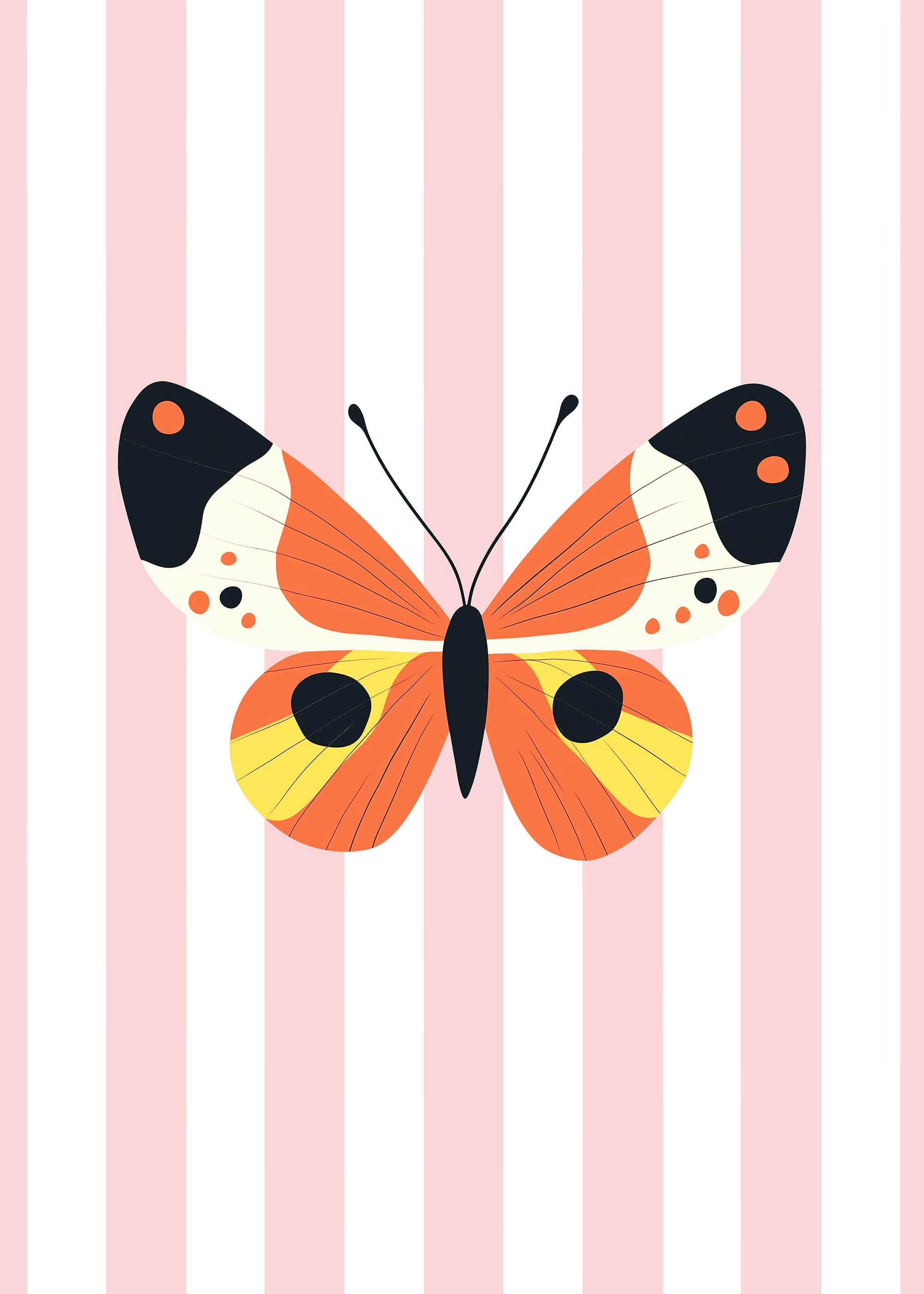 Ten urzekający motyl to prawdziwa perła w kolekcji Plakatello, która wprowadzi do dziecięcego pokoju atmosferę łagodnej elegancji i naturalnej harmonii. Delikatny owad rozpościera swoje skrzydła na tle subtelnych pasów w pudrowo-różowych tonach, tworząc kompozycję pełną ciepła i spokoju.