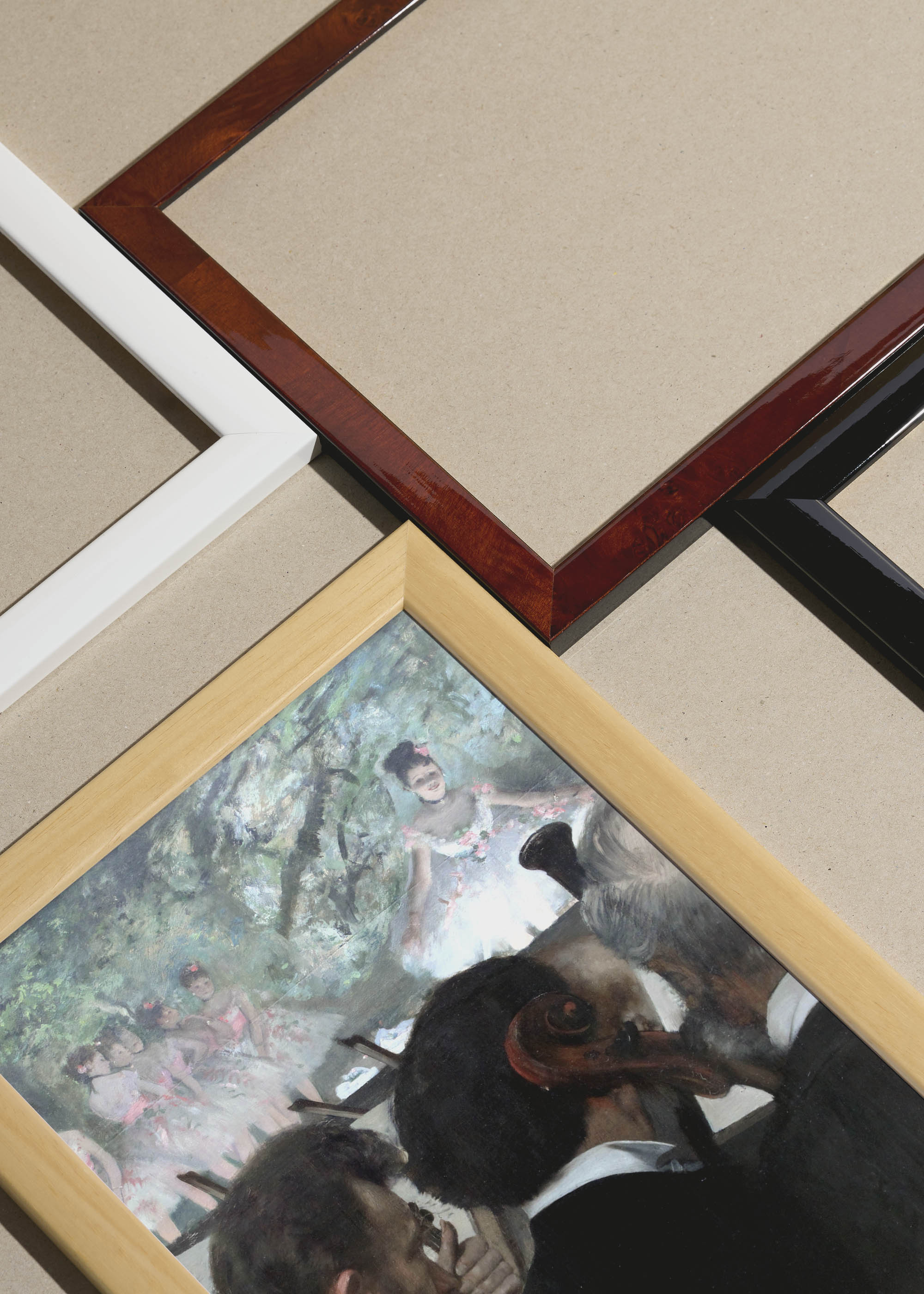 Packshot ramek Plakatello® wykonanych z włoskich i polskich listew ramiarskich. Ramy tworzone ręcznie w pracowni w Lublinie z wykorzystaniem tradycyjnych manualnych narzędzi. Każda rama jest indywidualnie wykańczana i kontrolowana przed wysyłką. Szeroka paleta kolorów pozwala dobrać idealną oprawę do plakatów i obrazów.